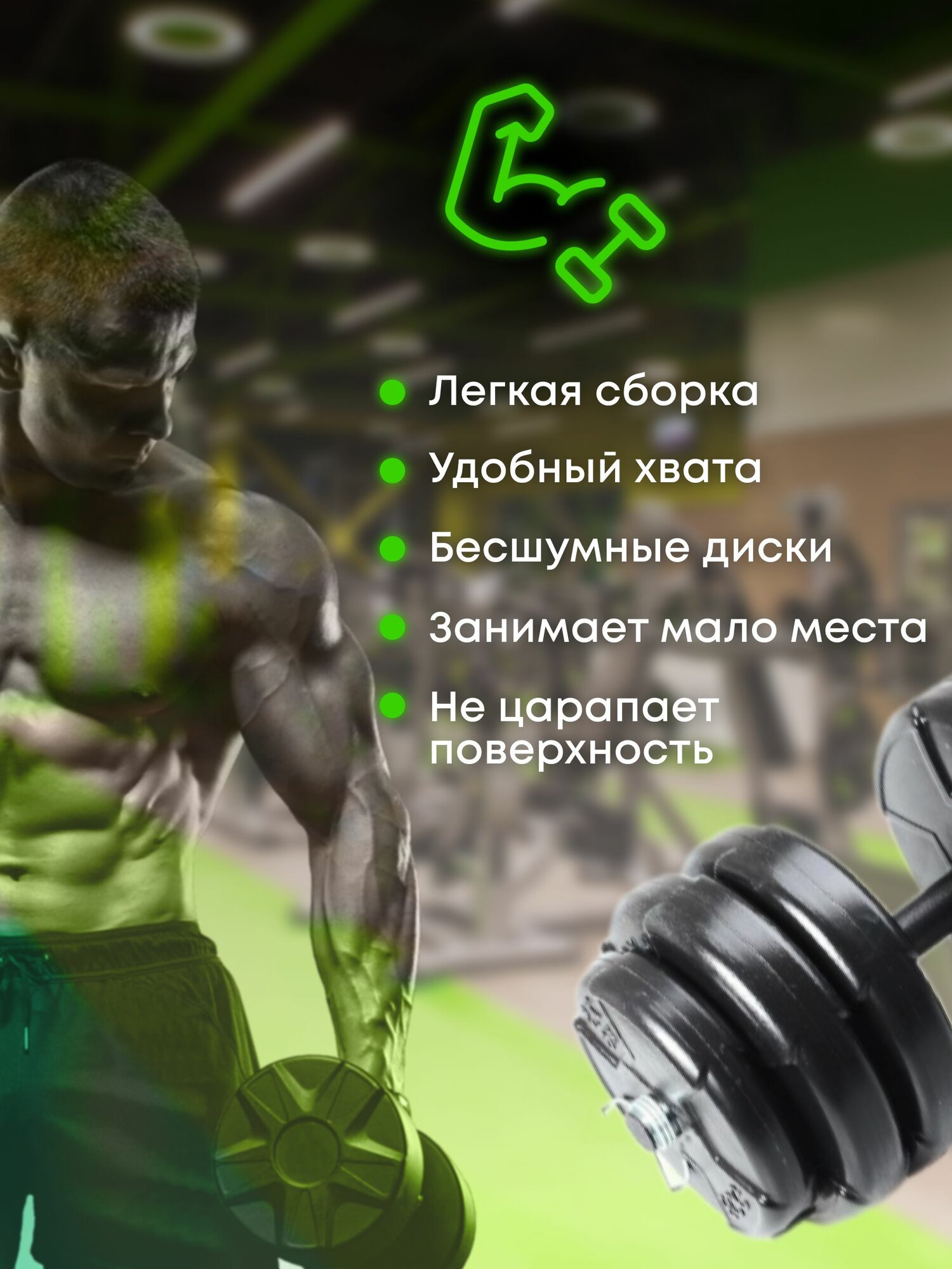 Гантели разборные 30 кг ECGSPOR, 2шт по 15 кг, с грифом, черные, для спорта фитнеса
