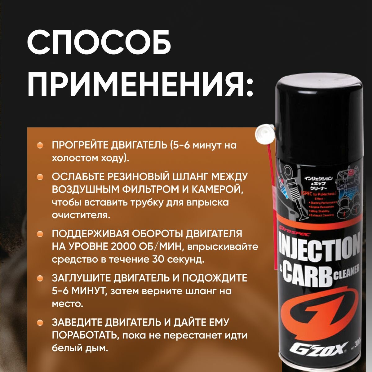 Очиститель камеры сгорания и топливной системы раскоксовка двигателя для автомобиля G'ZOX INJECTION & CARB CLEANER арт. 11101 интересное: