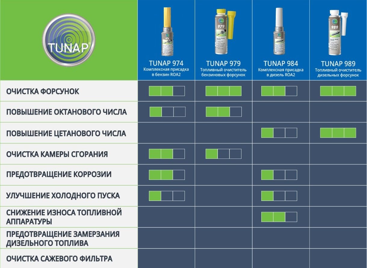 Топливный очиститель дизельных форсунок TUNAP 989 интересное: