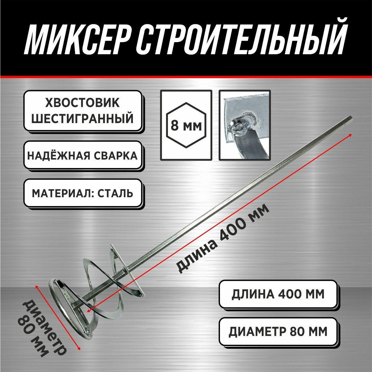 Миксер на дрель (венчик) 40см, диаметр 8см (400x80 мм) / Миксер строительный интересное: