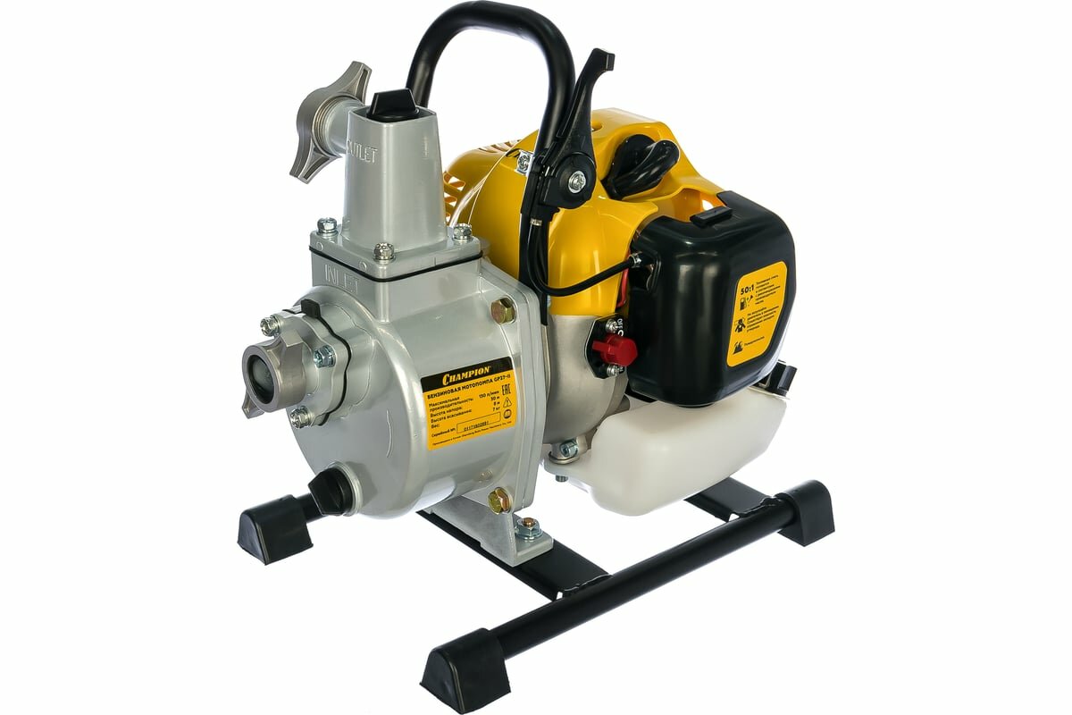 Мотопомпа CHAMPION GP27-II (1" 130л/мин 8/30м 1,22лс 2Т 0,95л 7кг, легкий старт) CHAMPION интересное:
