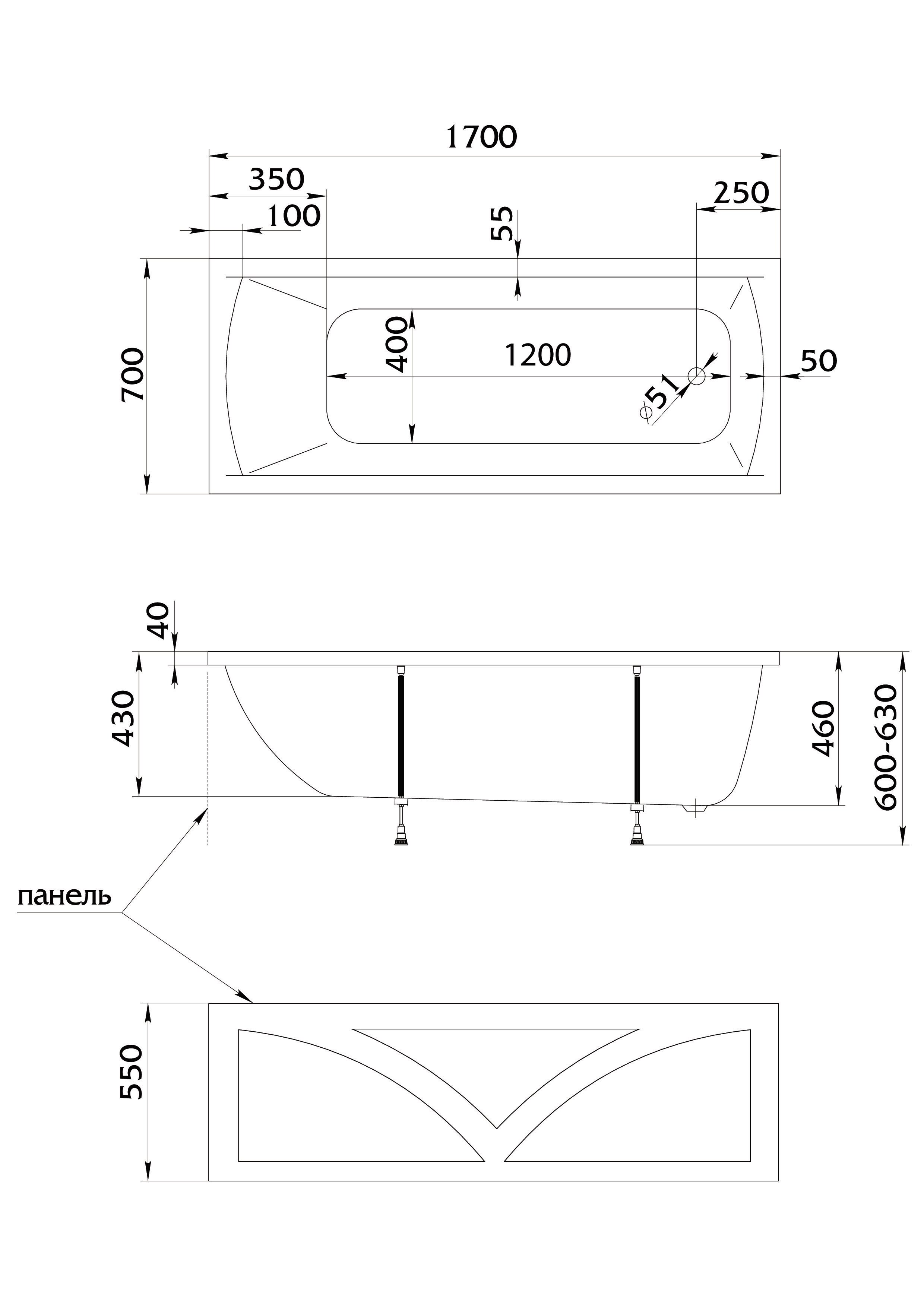 1MarKa Ванна MODERN 170х70, прямоугольная (01мод1770)