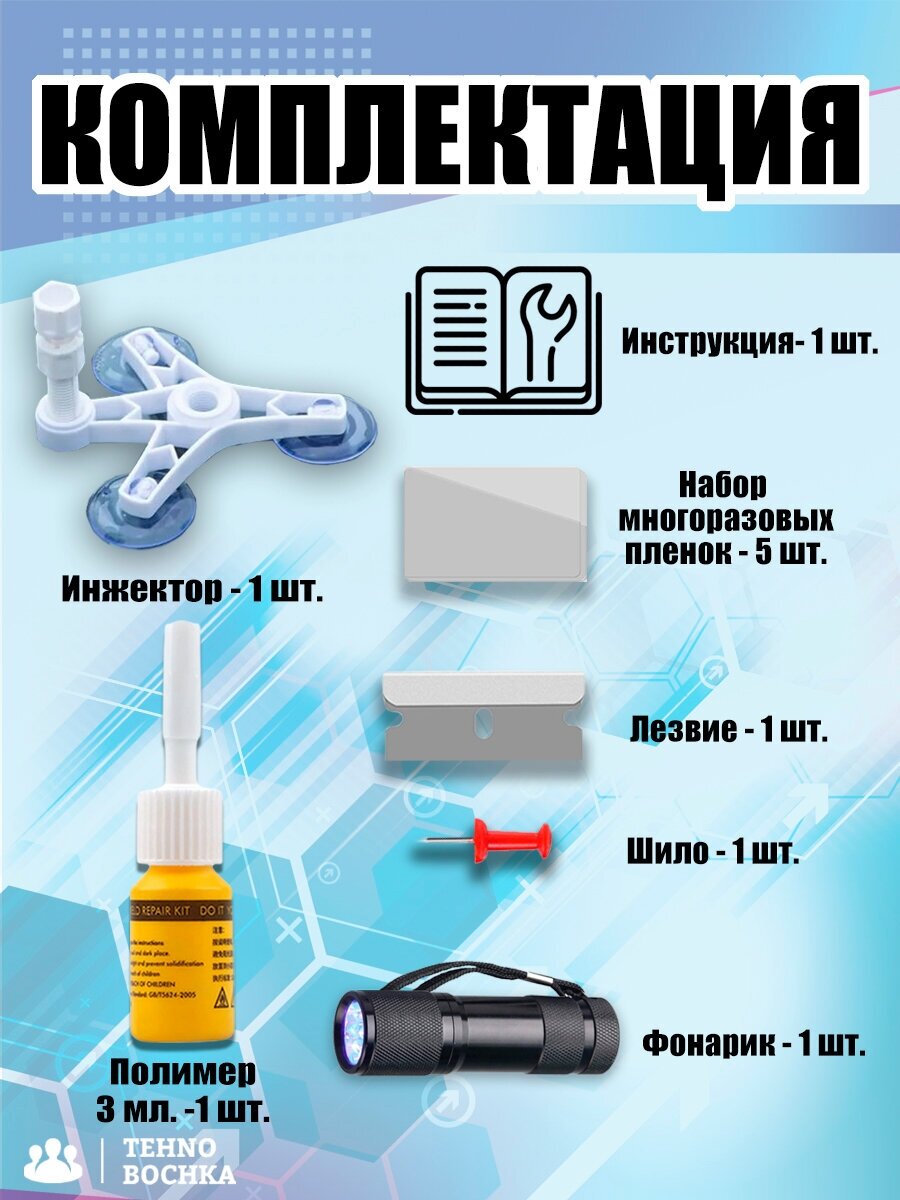 Набор ремкомплект для ремонта лобового стекла интересное: