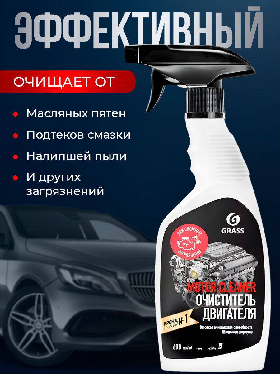| Подробная комплектация | Очиститель двигателя Grаss 600мл Motor Cleaner ТРИГГЕР - 1 шт. |