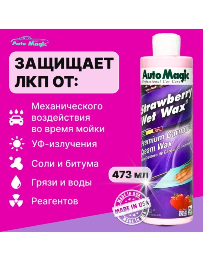 Крем-воск для защиты кузова Strawberry Wet Wax с клубничным ароматом, 473 мл интересное: