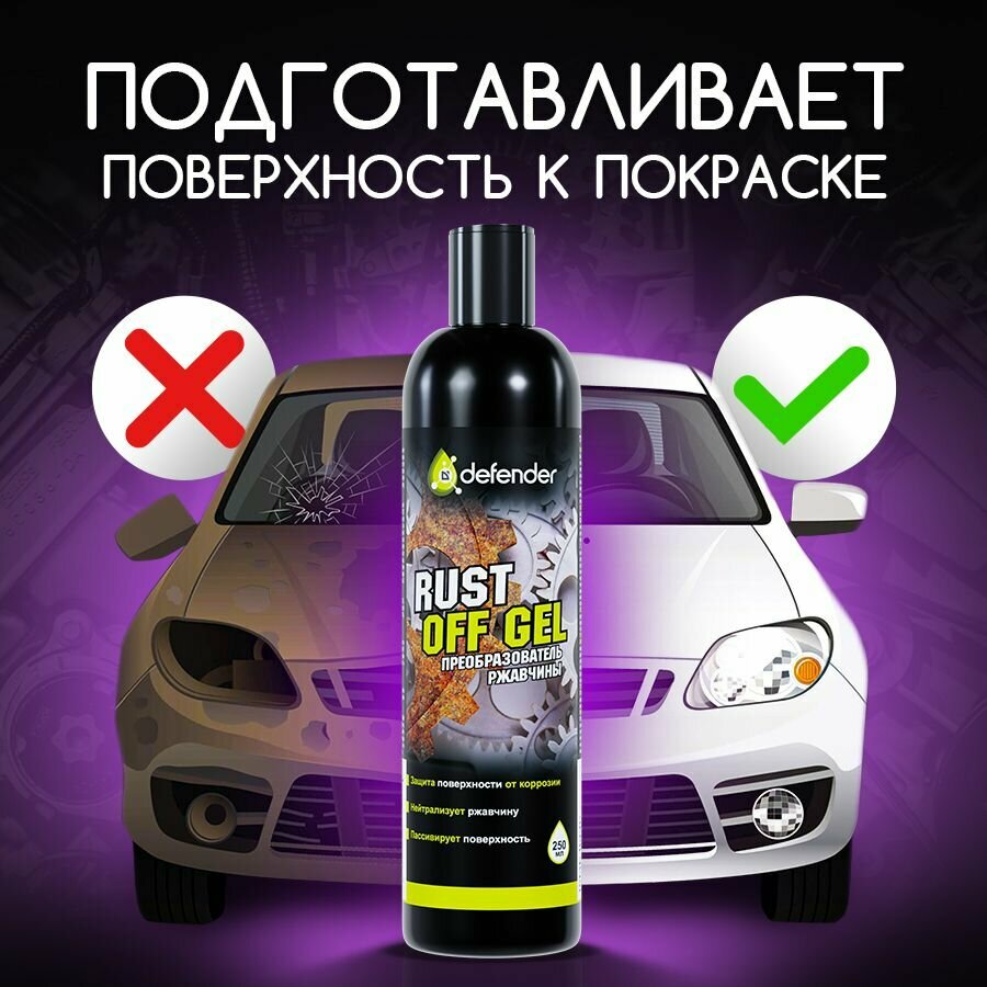 Гель преобразователь ржавчины / Антикор / Антиржавчина / Удалитель ржавчины / Средство от ржавчины Defender Auto Rust Off 250 мл. интересное: