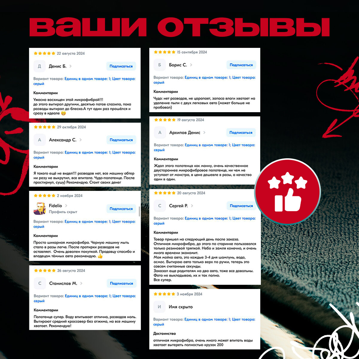 Ниже Вы можете прочитать отзывы на Микрофибра для авто 50x70 см 600GSM, полотенце для сушки кузова, ознакомится с подробными характеристиками, посмотреть интересные обзоры и фотографии на Микрофибра для авто 50x70 см 600GSM, полотенце для сушки кузова.