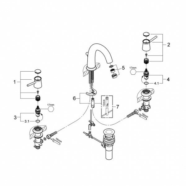 Смеситель Grohe BauClassic 20470000 для раковины с донным клапаном