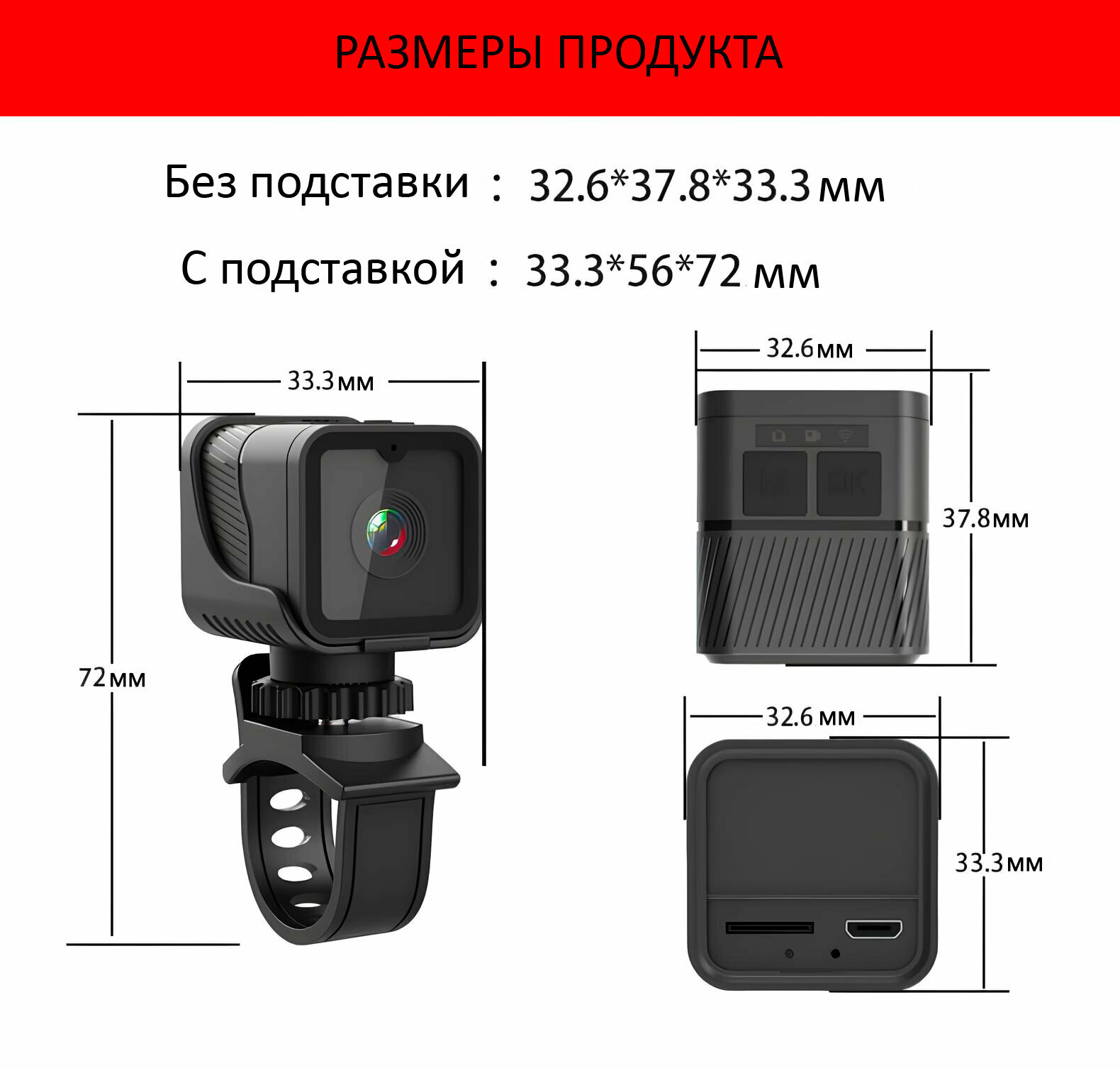 | Комплектация | Камера, крепление, блок под крепление, инструкция, провод для зарядки |