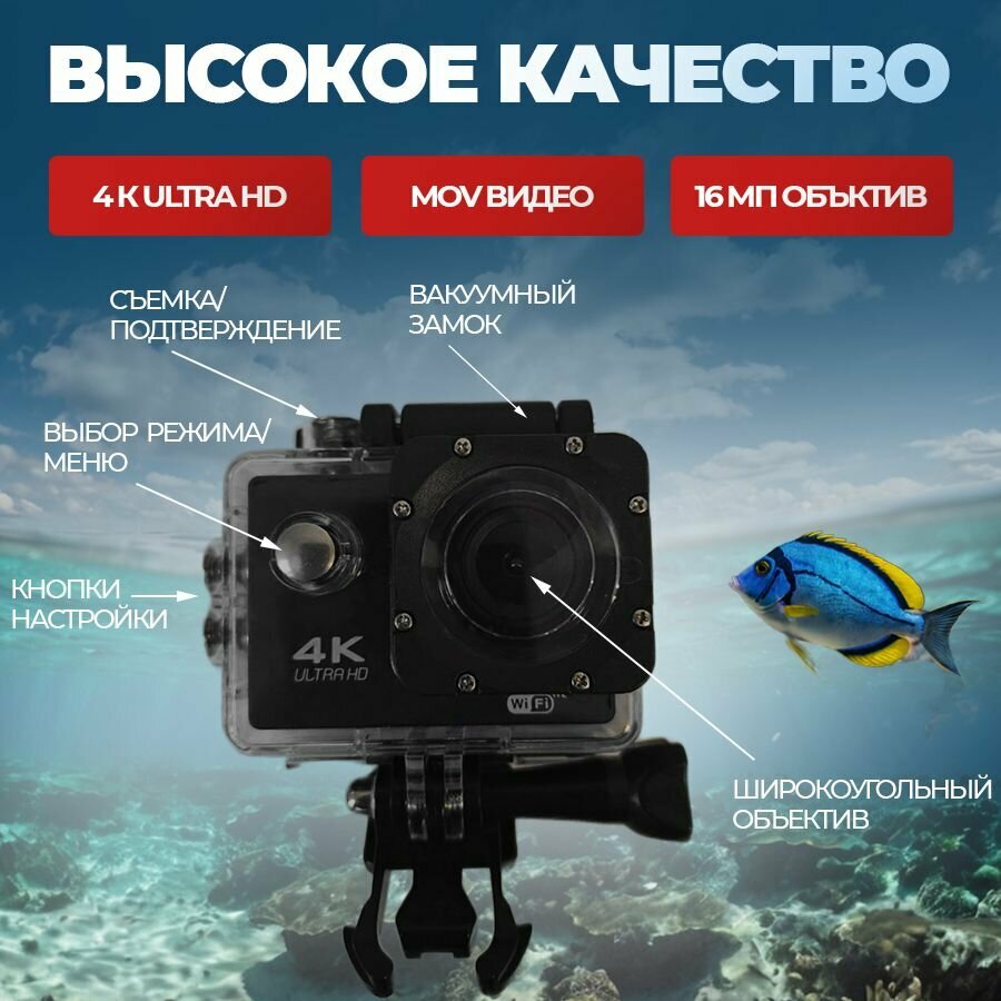 Экшн-камера 4K Sports Ultra HD/ Цифровая Wi-Fi экшен-камера с водонепроницаемым кейсом. интересное: