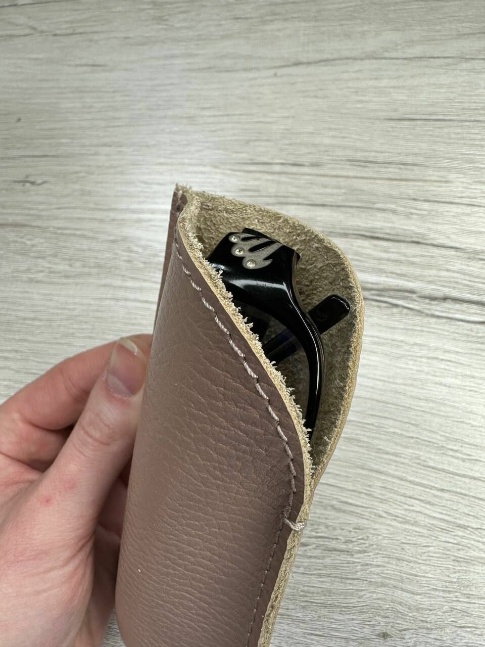 Купить Футляр из натуральной кожи для очков/Чехол кожаный/Очечник флоттер бежевый