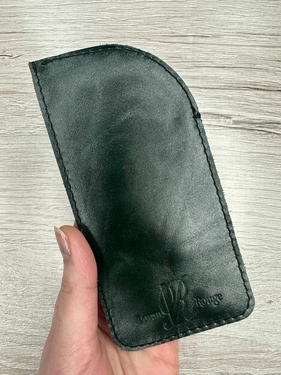 Футляр из натуральной кожи для очков/Чехол кожаный/Очечник флоттер зеленый