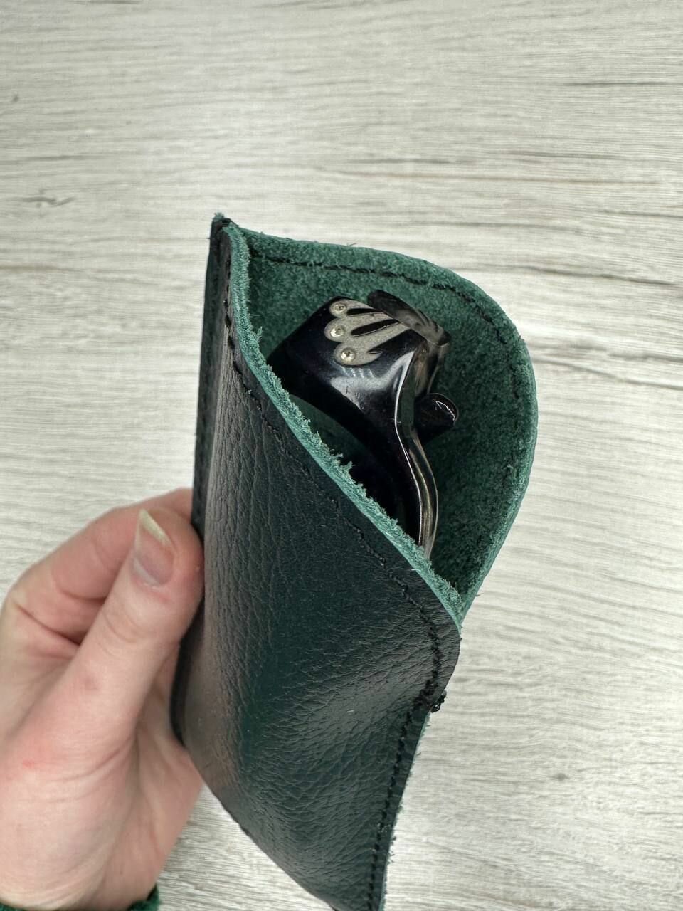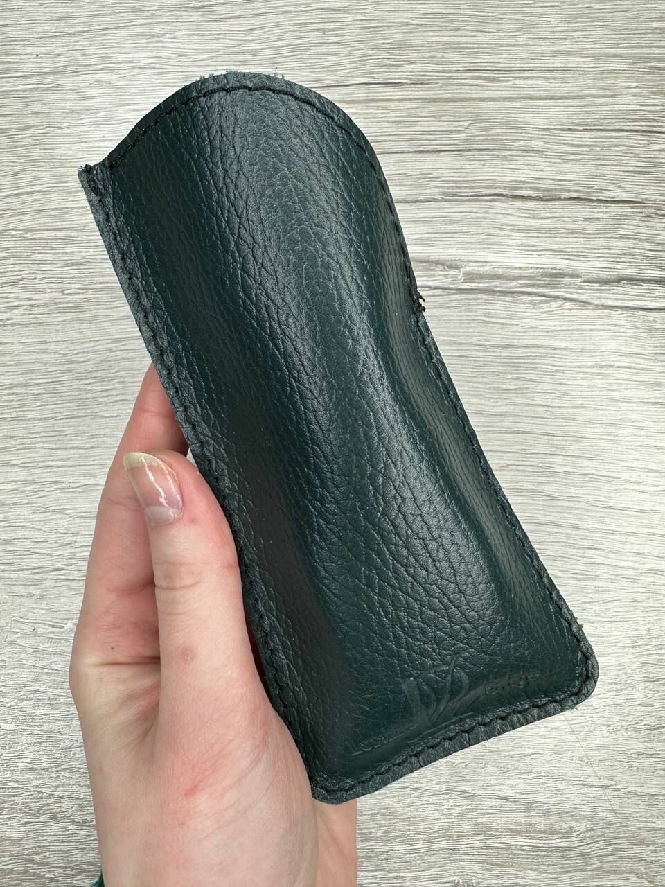 Купить Футляр из натуральной кожи для очков/Чехол кожаный/Очечник флоттер зеленый