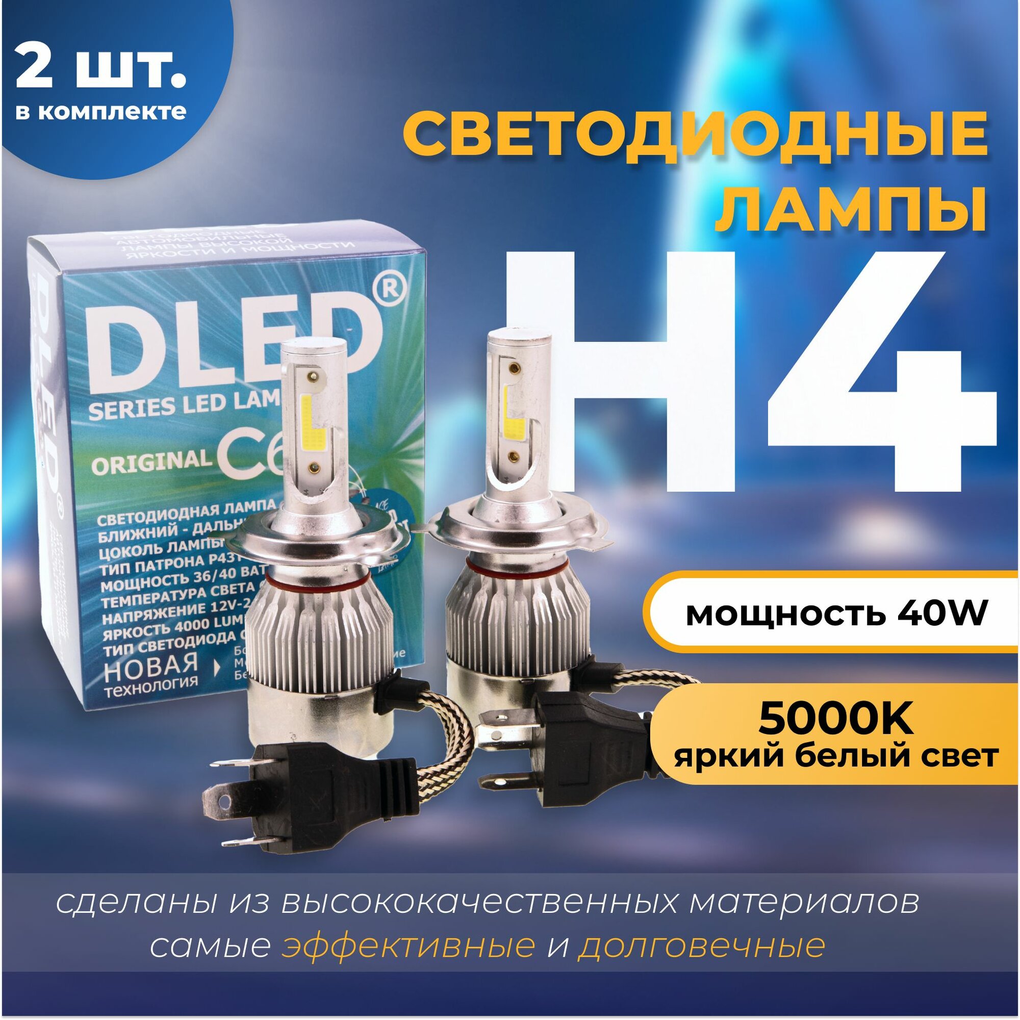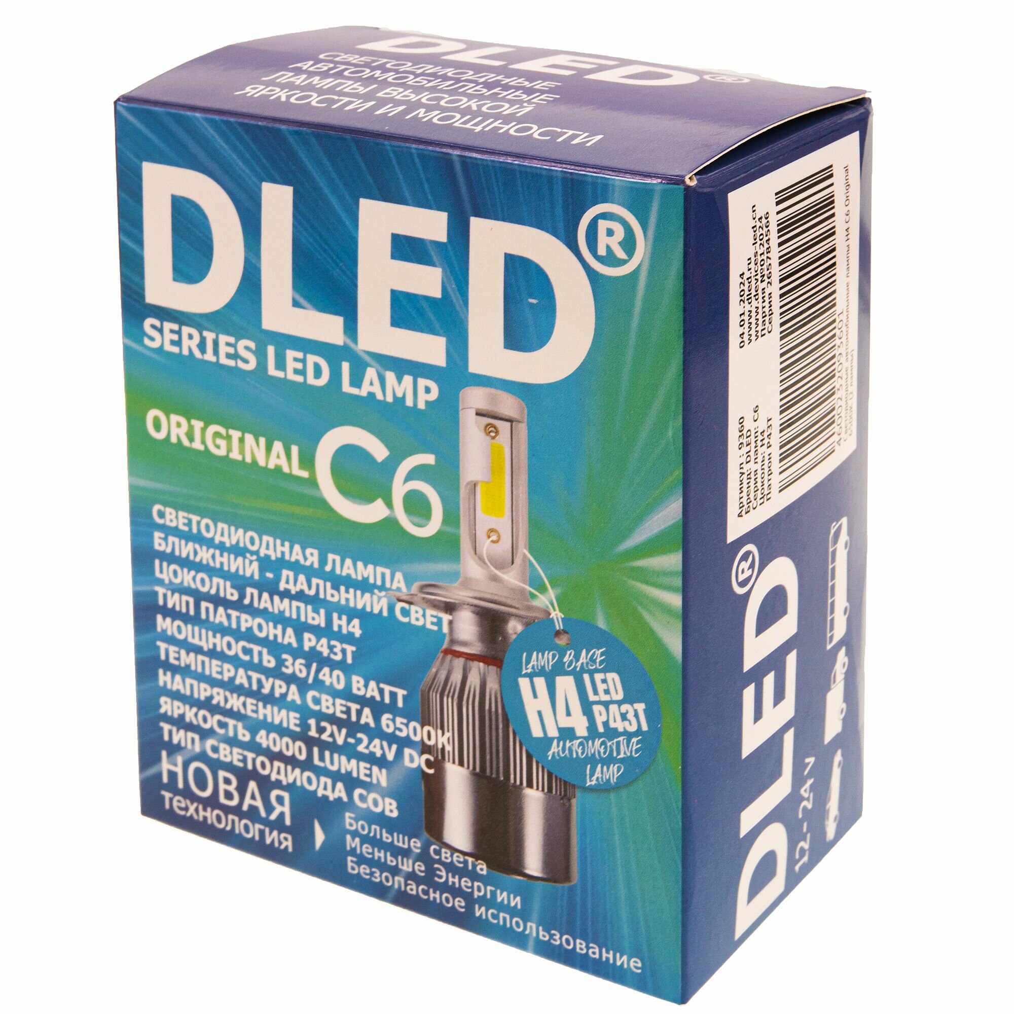 Купить Автолампа светодиодная H4 DLED C6 Оригинал 5000K P43T (2 лампы)