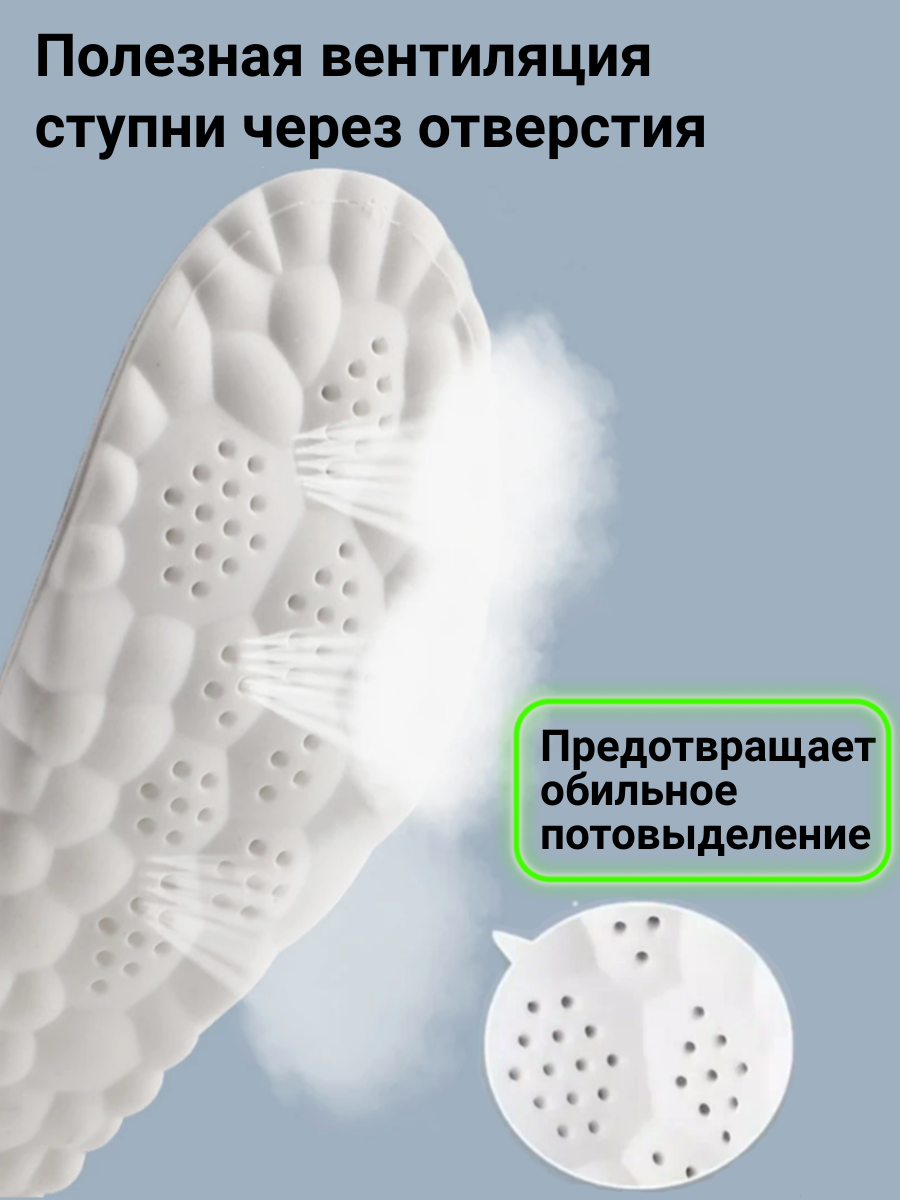 Анатомические спортивные стельки, с пружинящим эффектом, амортизирующие, ортопедические, универсальные, с перфорацией, р-р 35-40, серые