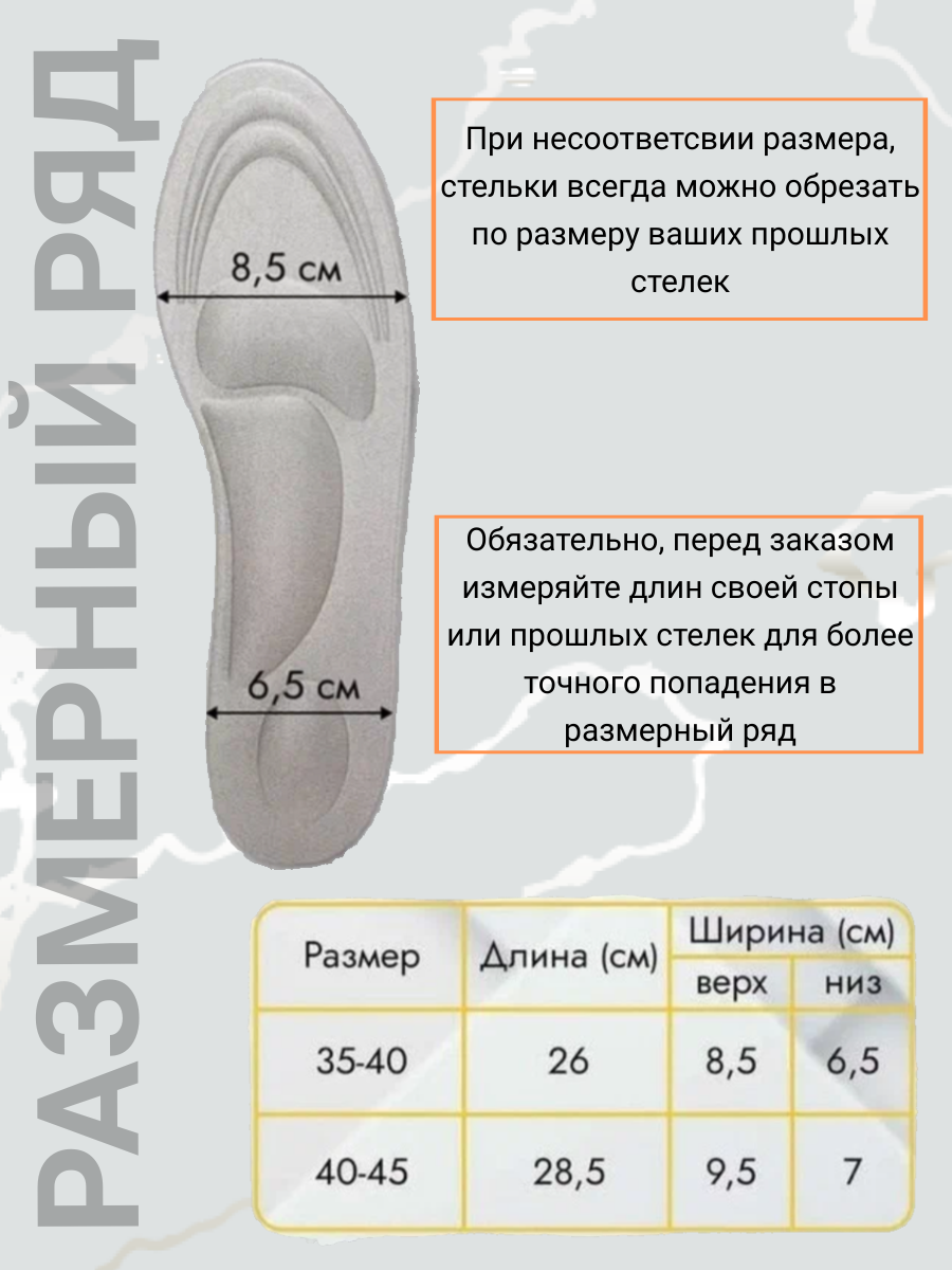 Купить Стельки для обуви, анатомические, с ортопедическим эффектом памяти, мягкие, при плоскостопии, р-р 40-46, светло-серые