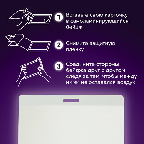 Бейдж для пропуска пластиковый горизонтальный 74х104 мм, бейджик самоламинирующийся с клипсой в школу, Brauberg, 236791