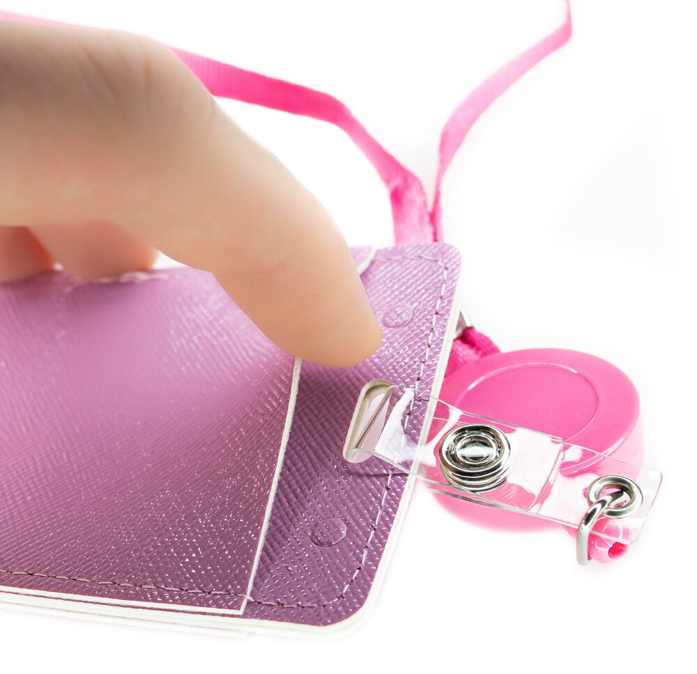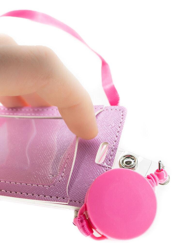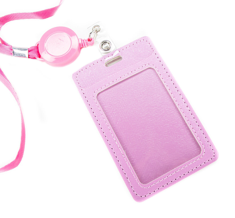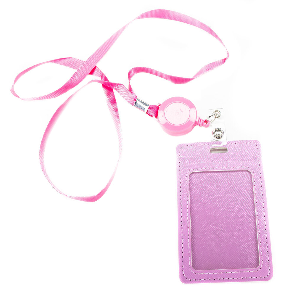 Купить Бейдж для пропуска, картхолдер, с рулеткой и лентой, розовый, 65x110 мм
