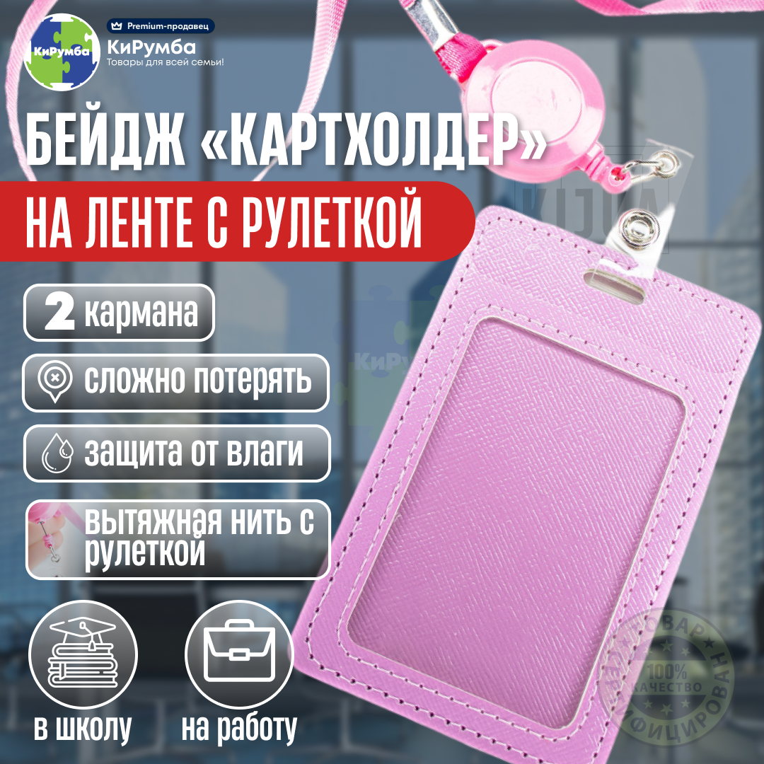 СохранитьБейдж для пропуска, картхолдер, с рулеткой и лентой, розовый, 65x110 мм интересное: