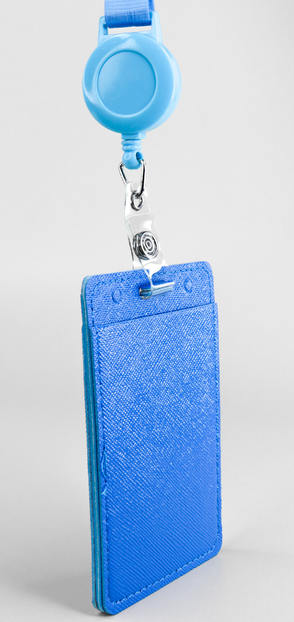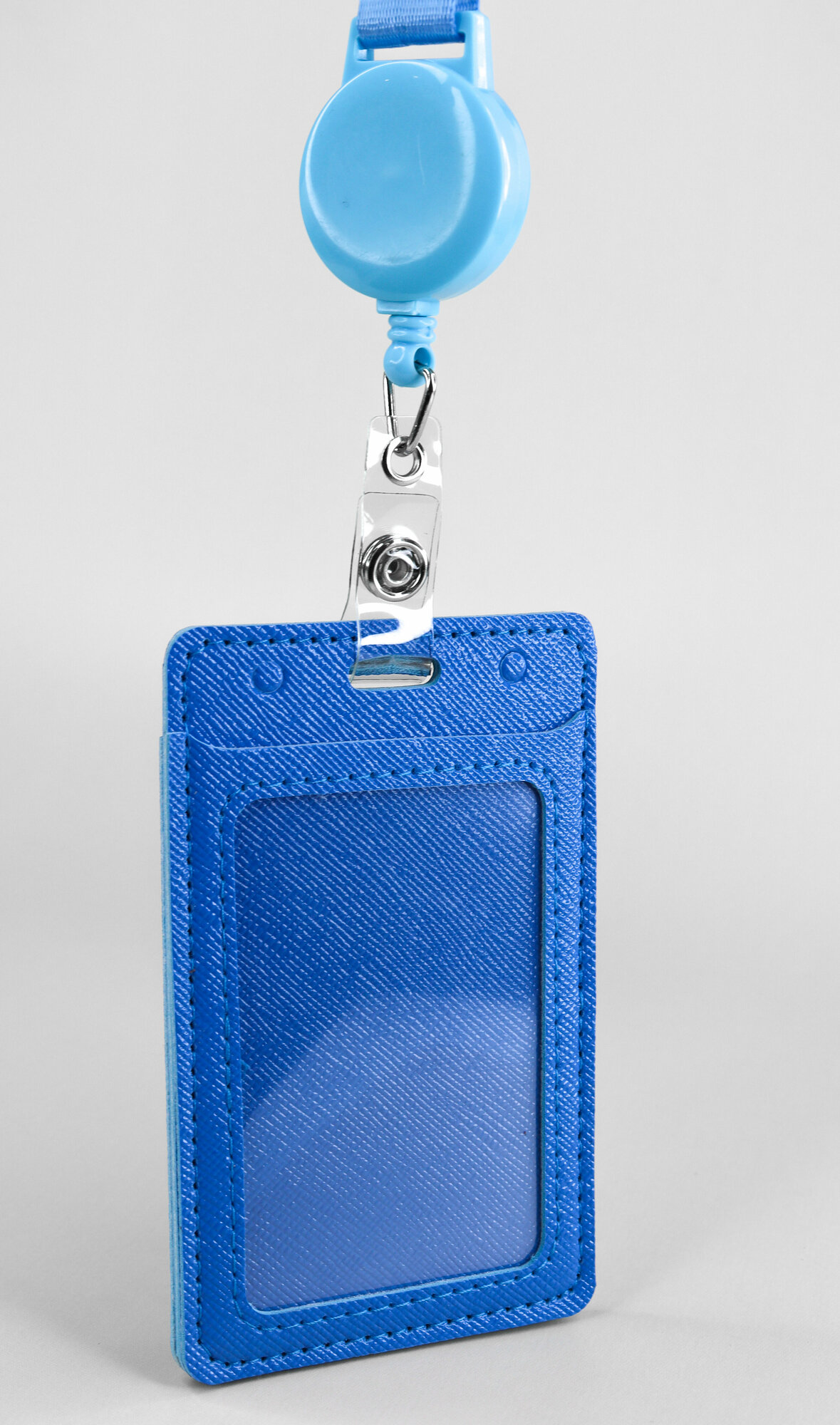 Купить Бейдж для пропуска, картхолдер, с рулеткой и лентой, голубой, 65x110 мм