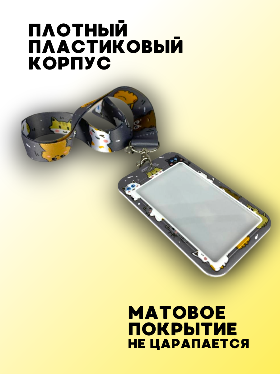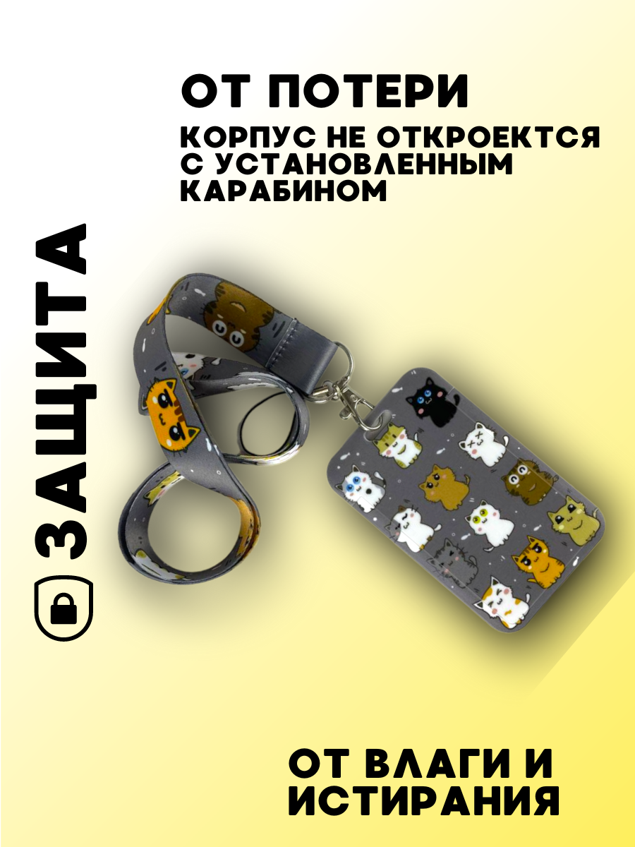 Купить Бейдж чехол для пропуска карт жесткий серые коты на ленте