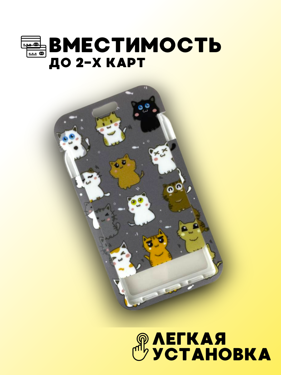 Бейдж чехол для пропуска карт жесткий серые коты на ленте интересное: