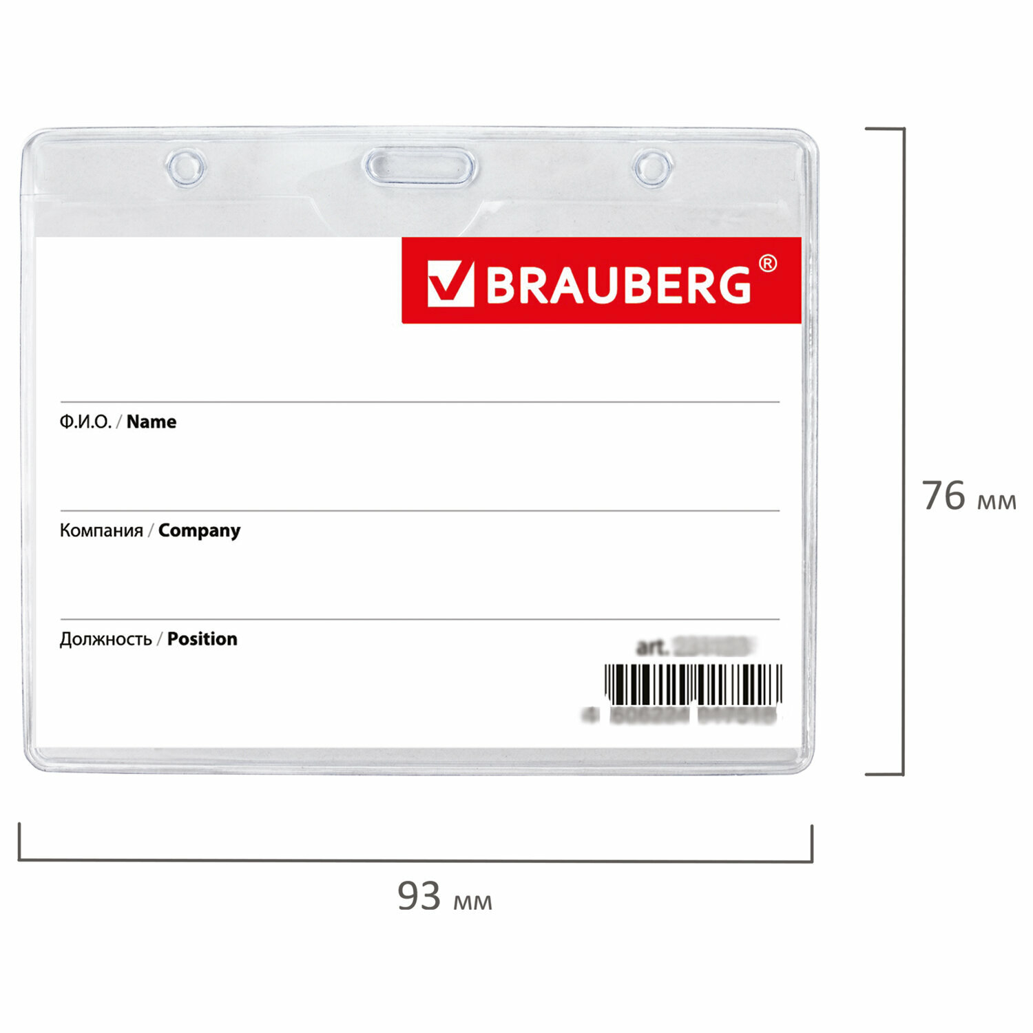 Бейдж для пропуска на ленте пластиковый прозрачный горизонтальный 60х90 мм, бейджик на синем шнурке 45 см в школу, набор 5 штук, Brauberg, 880103 интересное:
