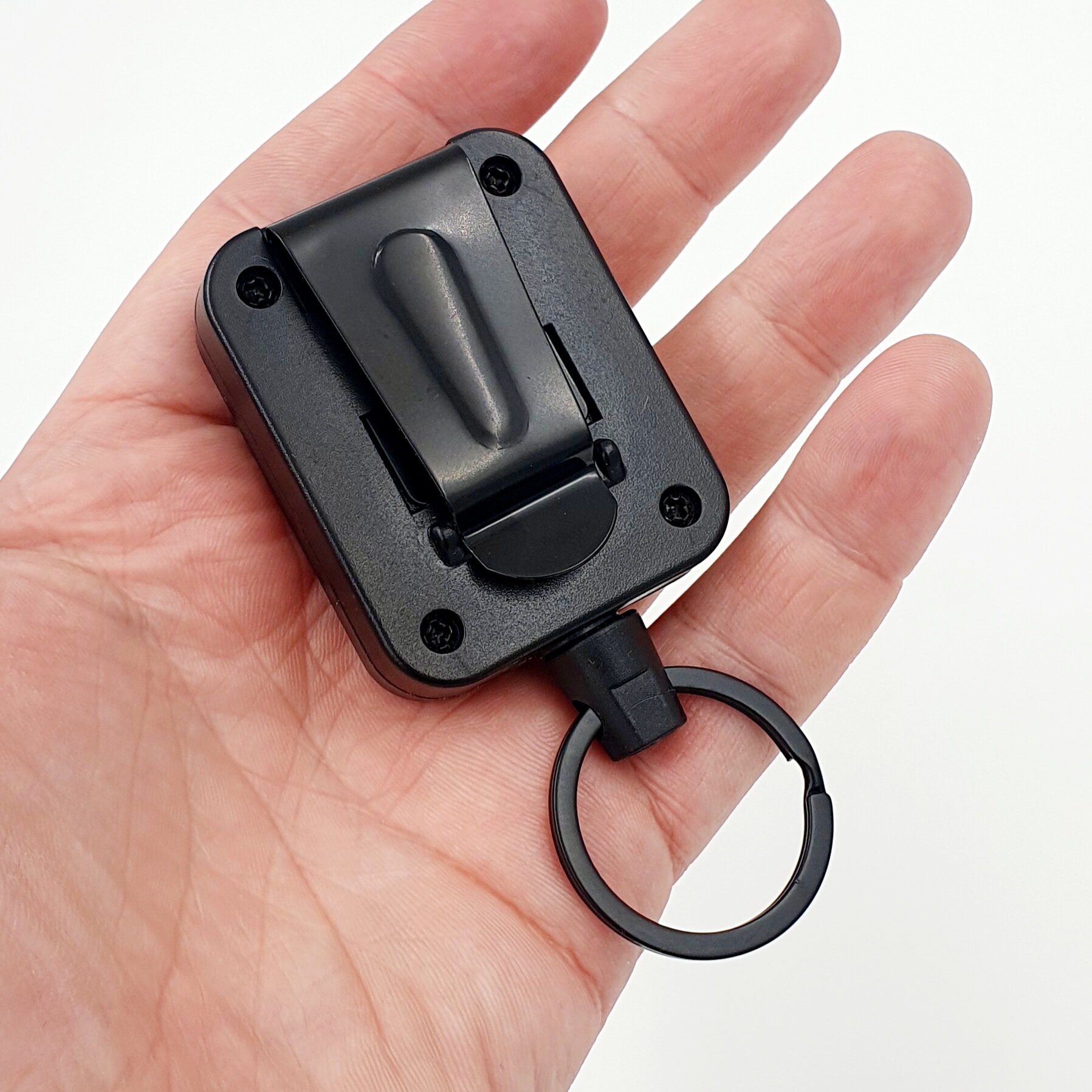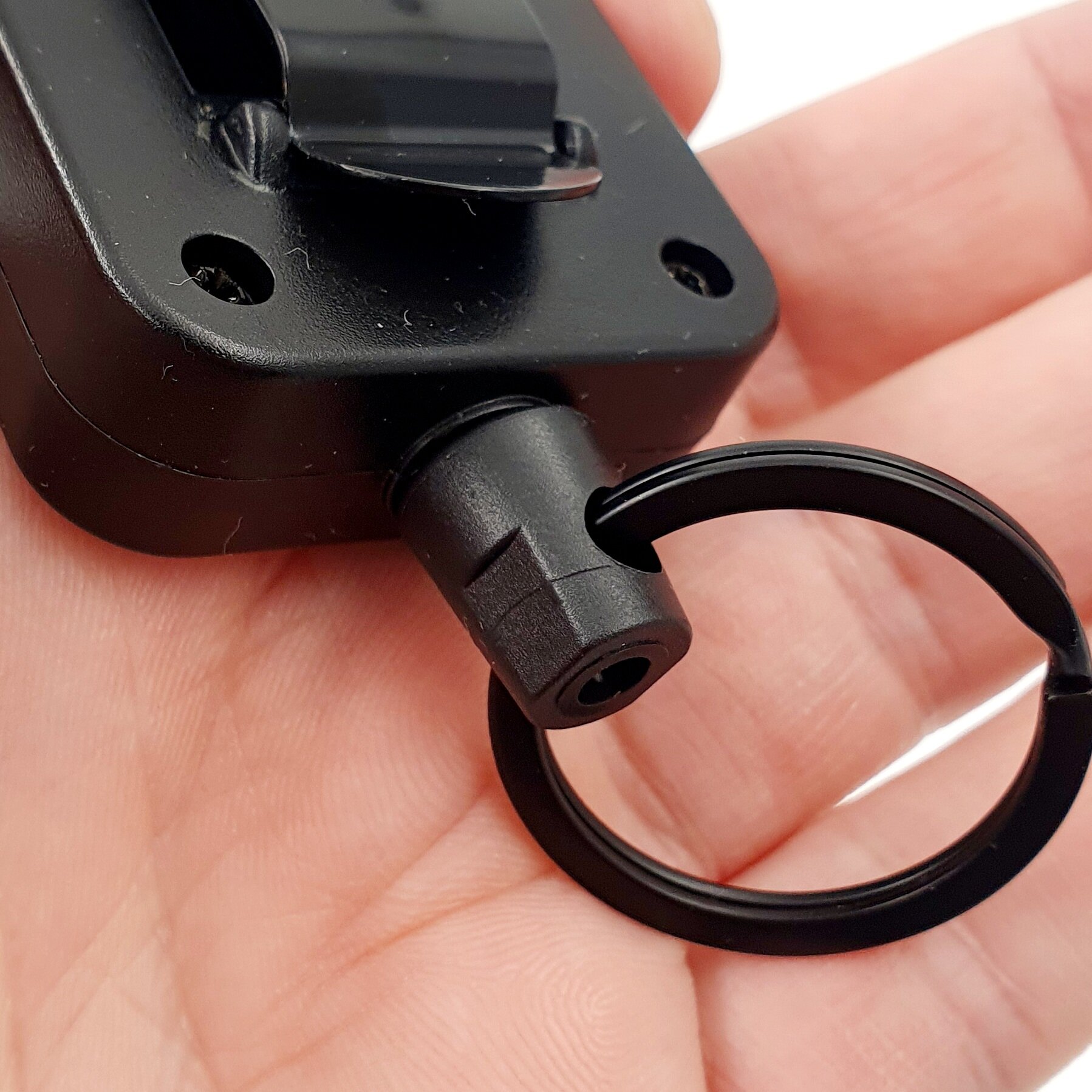 Брелок держатель рулетка усиленная / ретрактор для бейджа, ключей, пропуска / бейджика, 65 см, 2 кольца - черный цвет