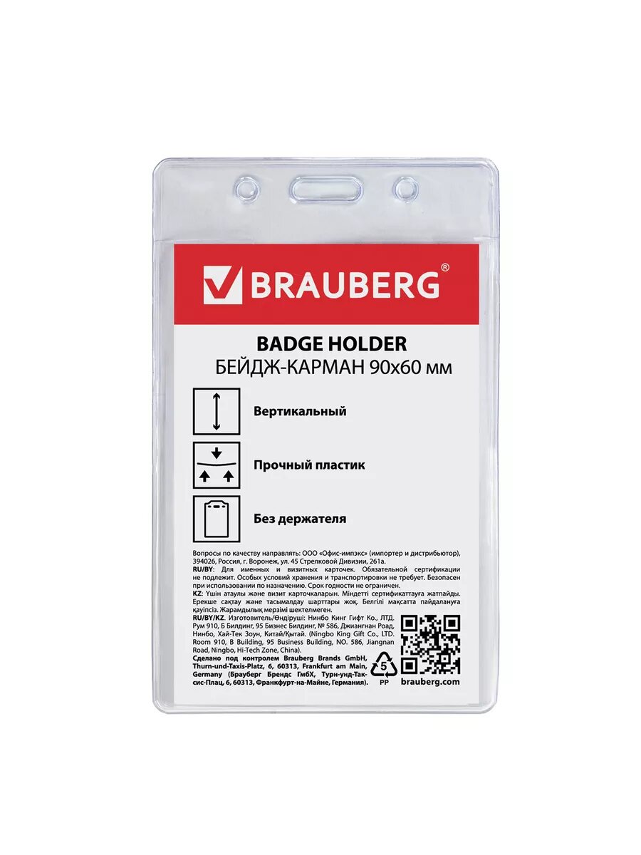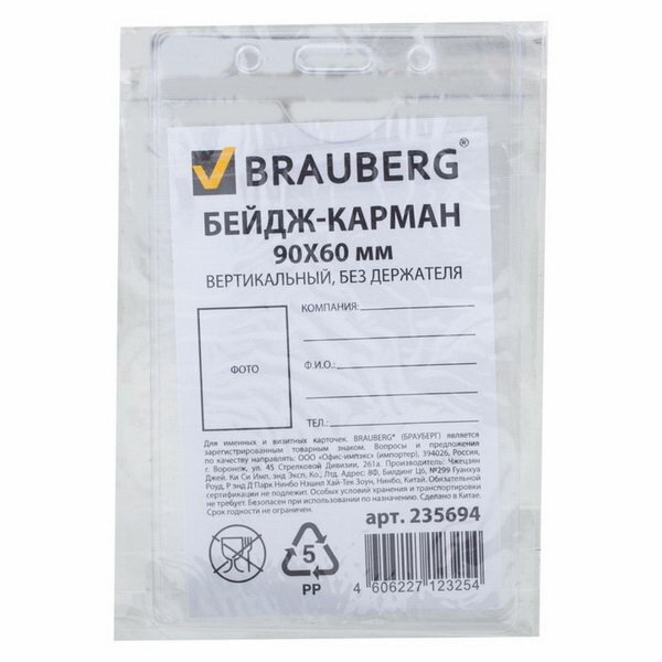 Вертикальный бейдж-карман BRAUBERG 235694