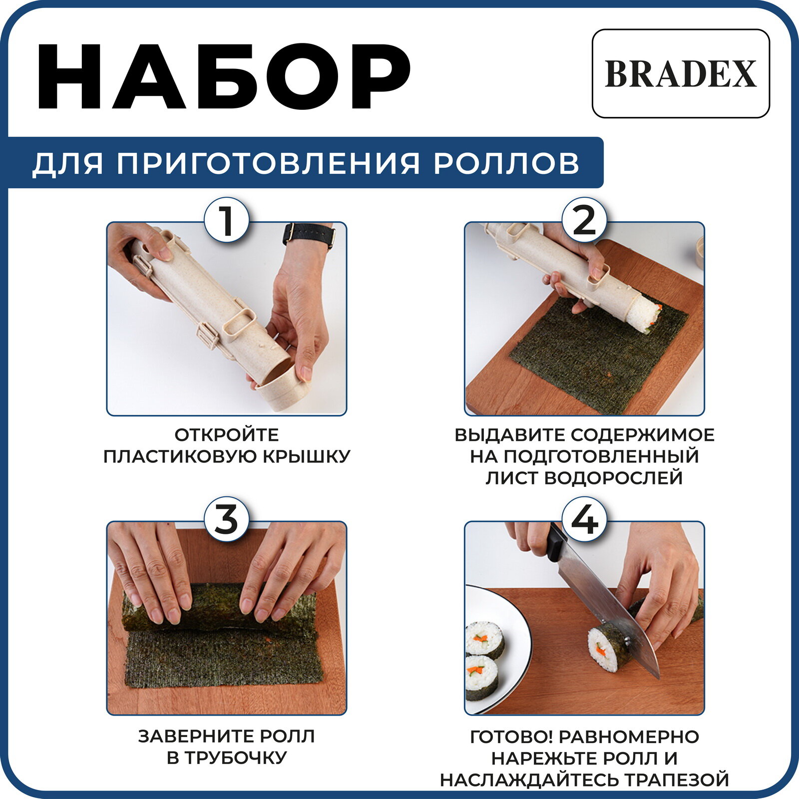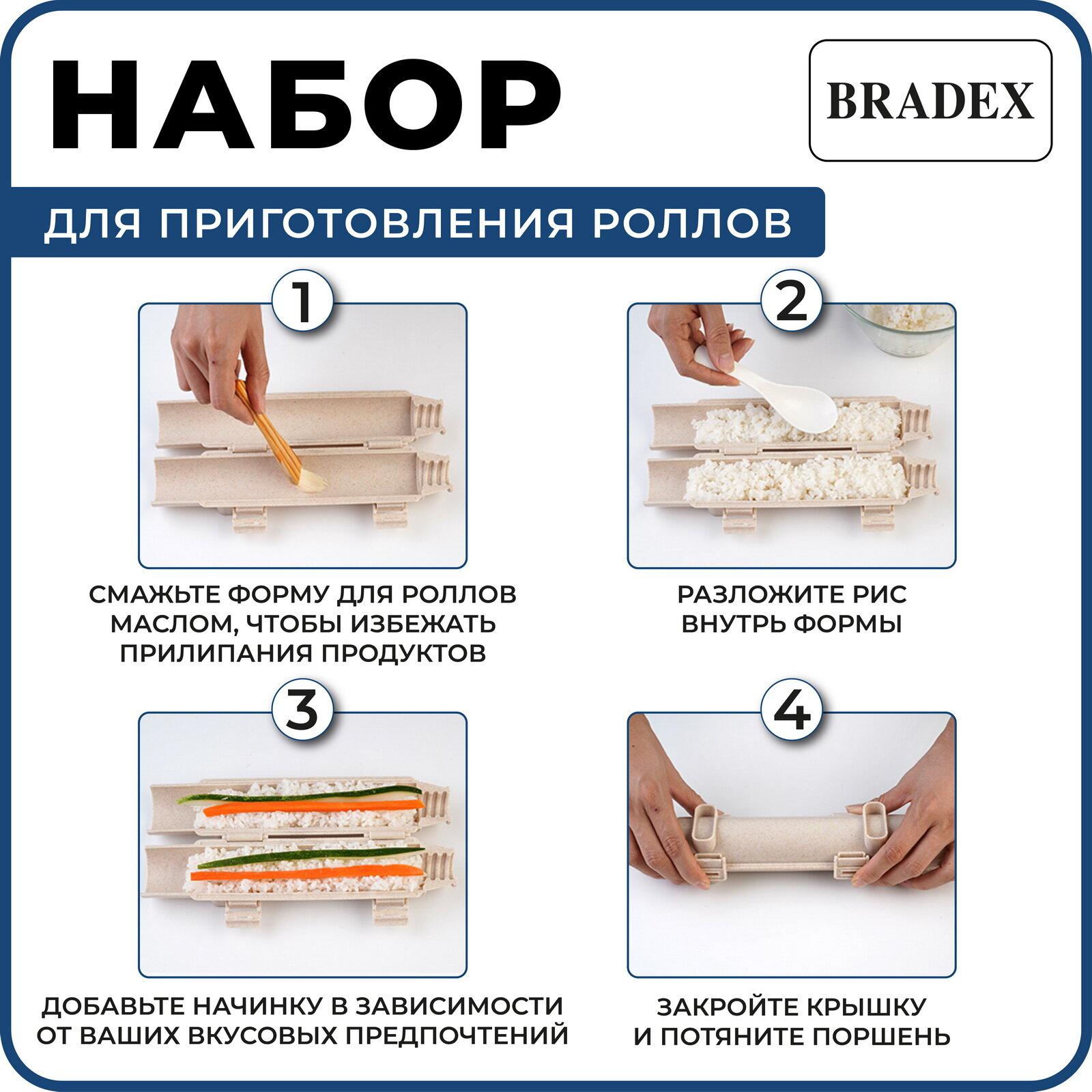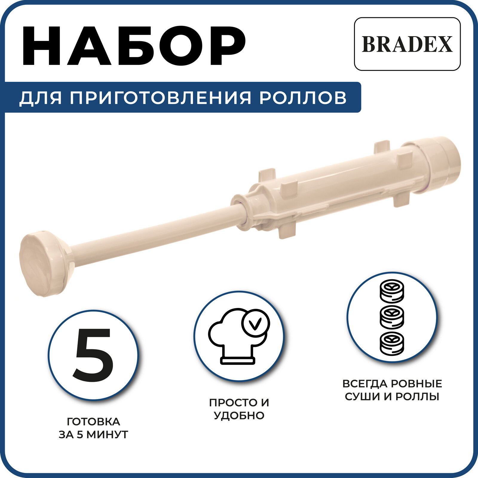 Форма для приготовления роллов, диаметр 5см, длина 27см, пластик, бежевый интересное: