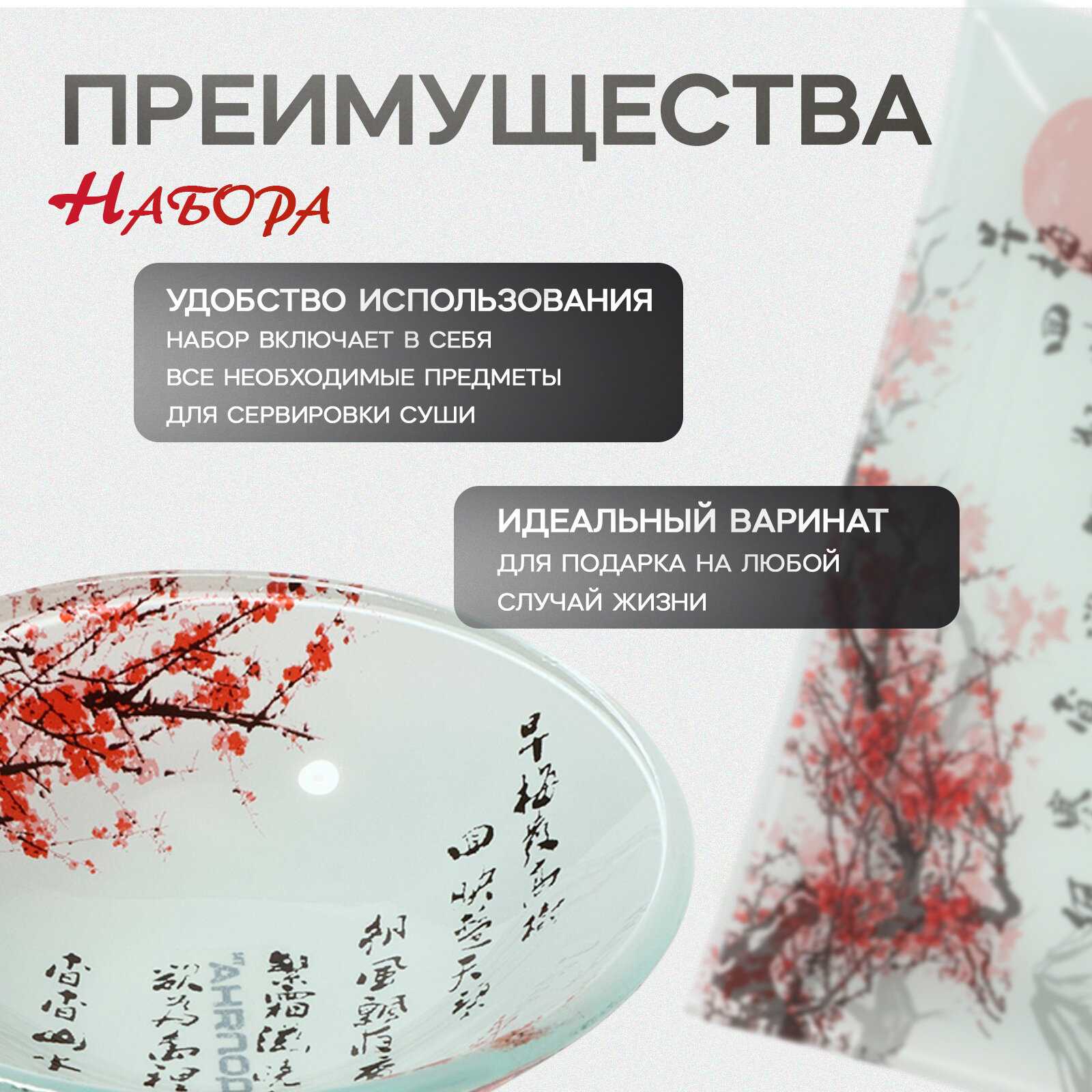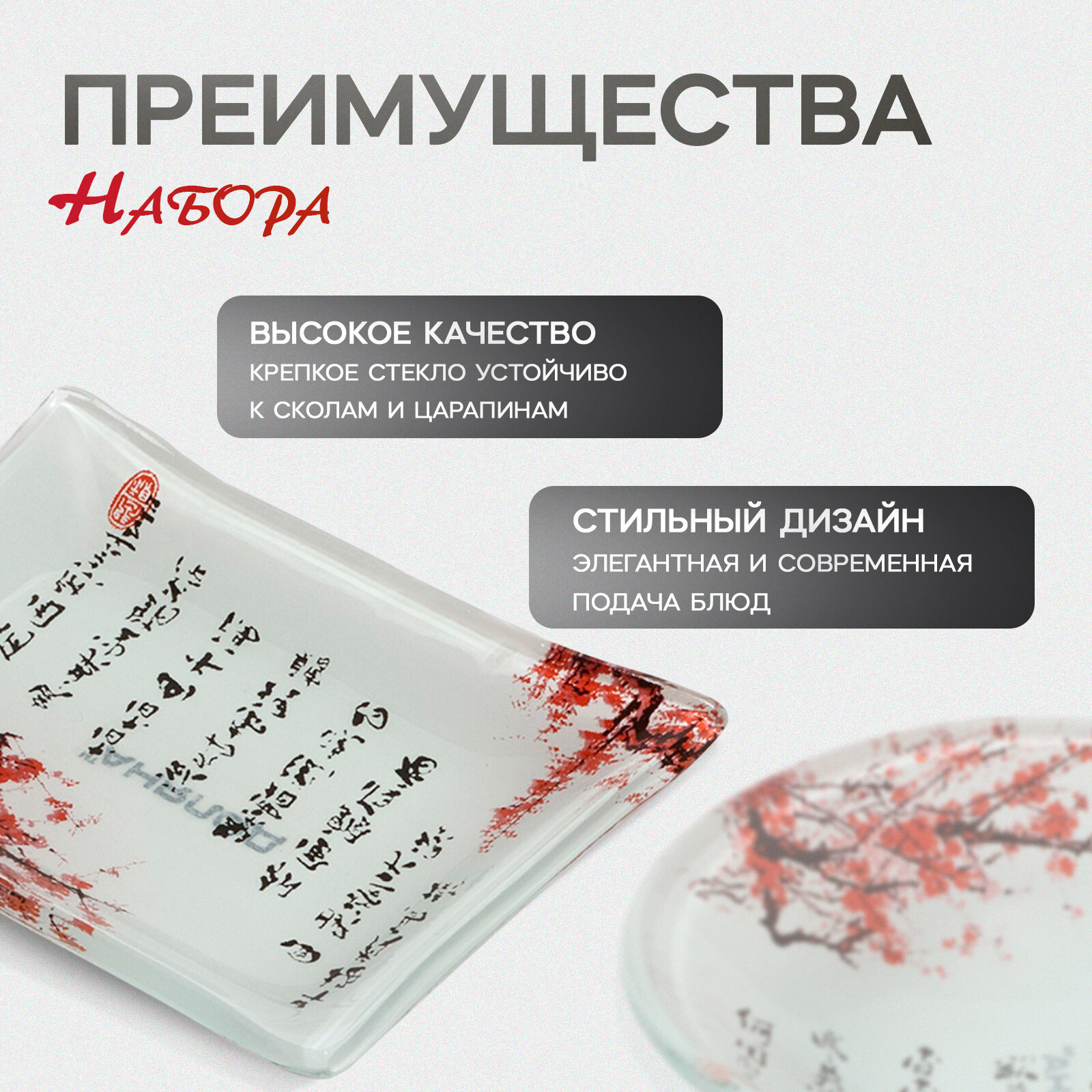 Набор для суши из стекла Доляна «Сакура», 3 предмета: соусники 8×2 см, 8×6 см, подставка 25×15 см интересное: