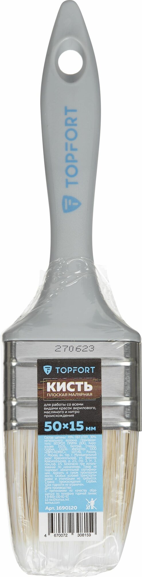Кисть малярная TOPFORT, плоская, 50х15, из смешанной щетины, серая