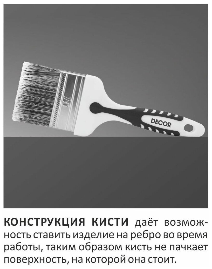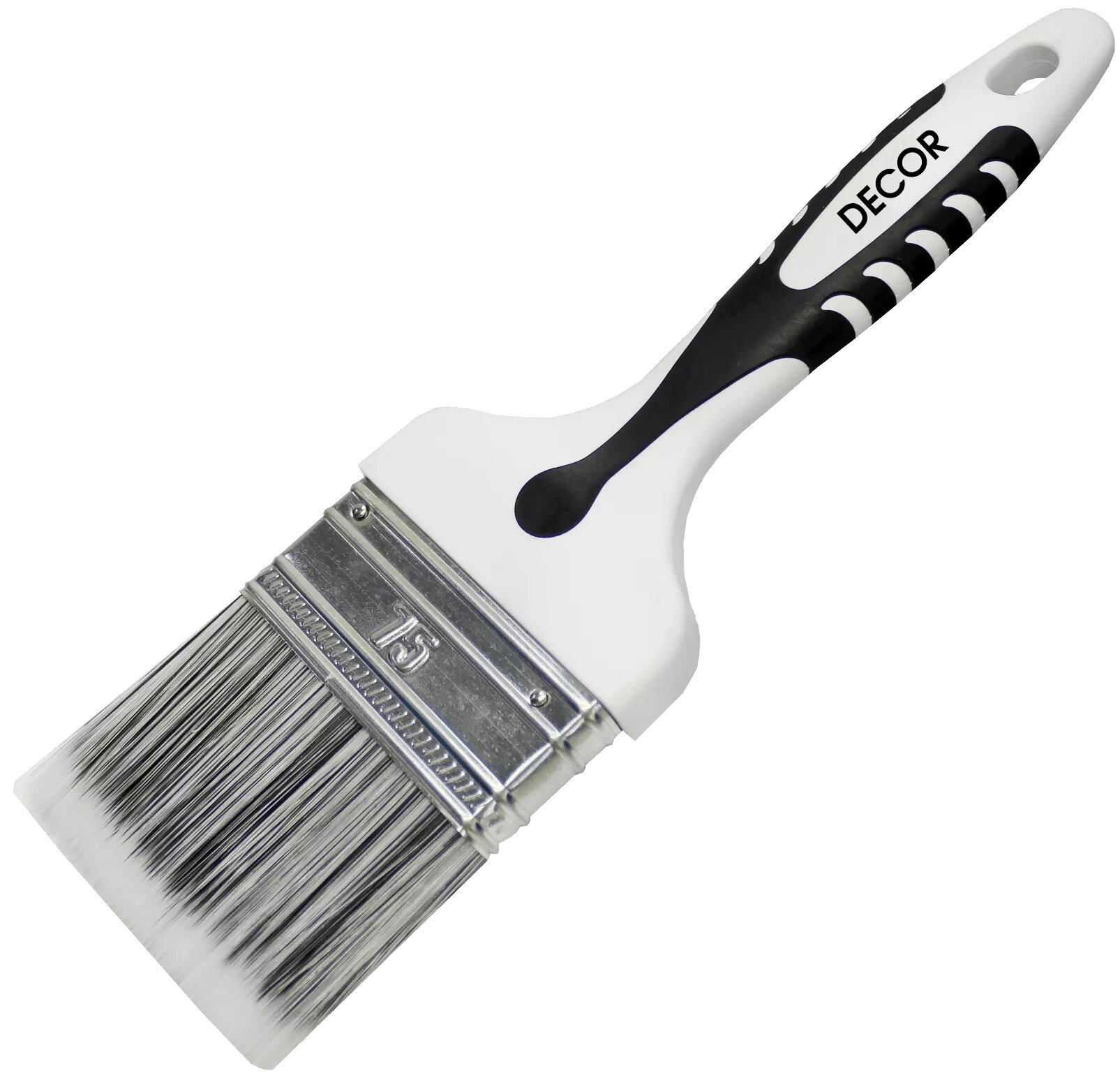 Малярная кисть DECOR плоская для грунта 50 мм черная-белая синтетическая щетина, длина щетины 54 мм, пластиковая противоскользящая ручка