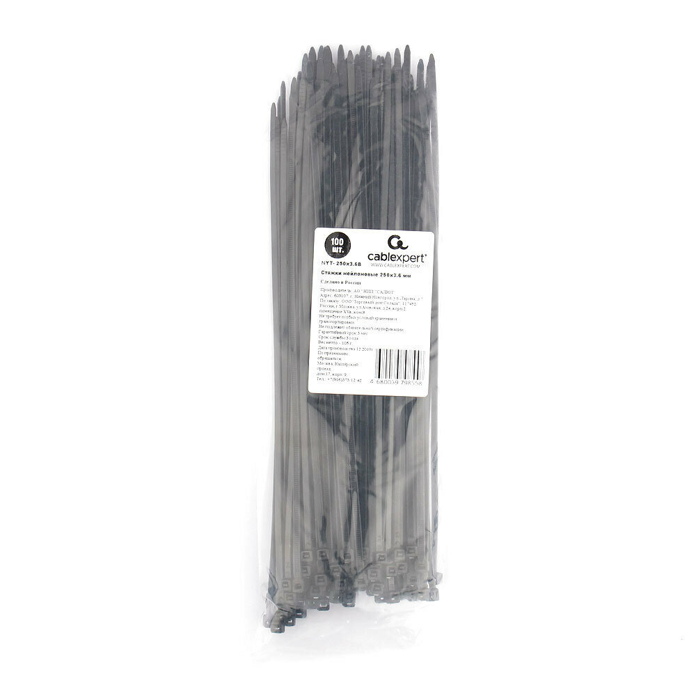 Стяжки Cablexpert пластиковые чёрные 250 мм х 3.6 мм (100 шт.) NYT-250x3.6B