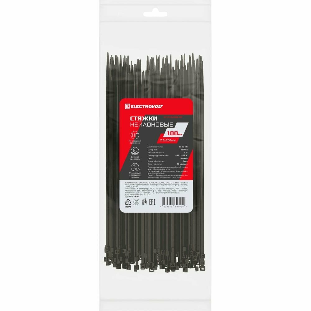 Купить Нейлоновая стяжка ELECTROVOLT, 2,5 х 200 мм, 100 штук в упаковке, черная