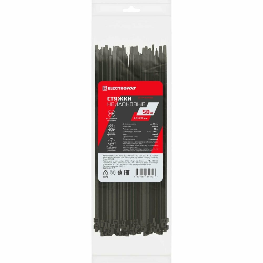Купить Нейлоновая стяжка ELECTROVOLT, 4,8 x 200 мм, 50 штук в упаковке, черная