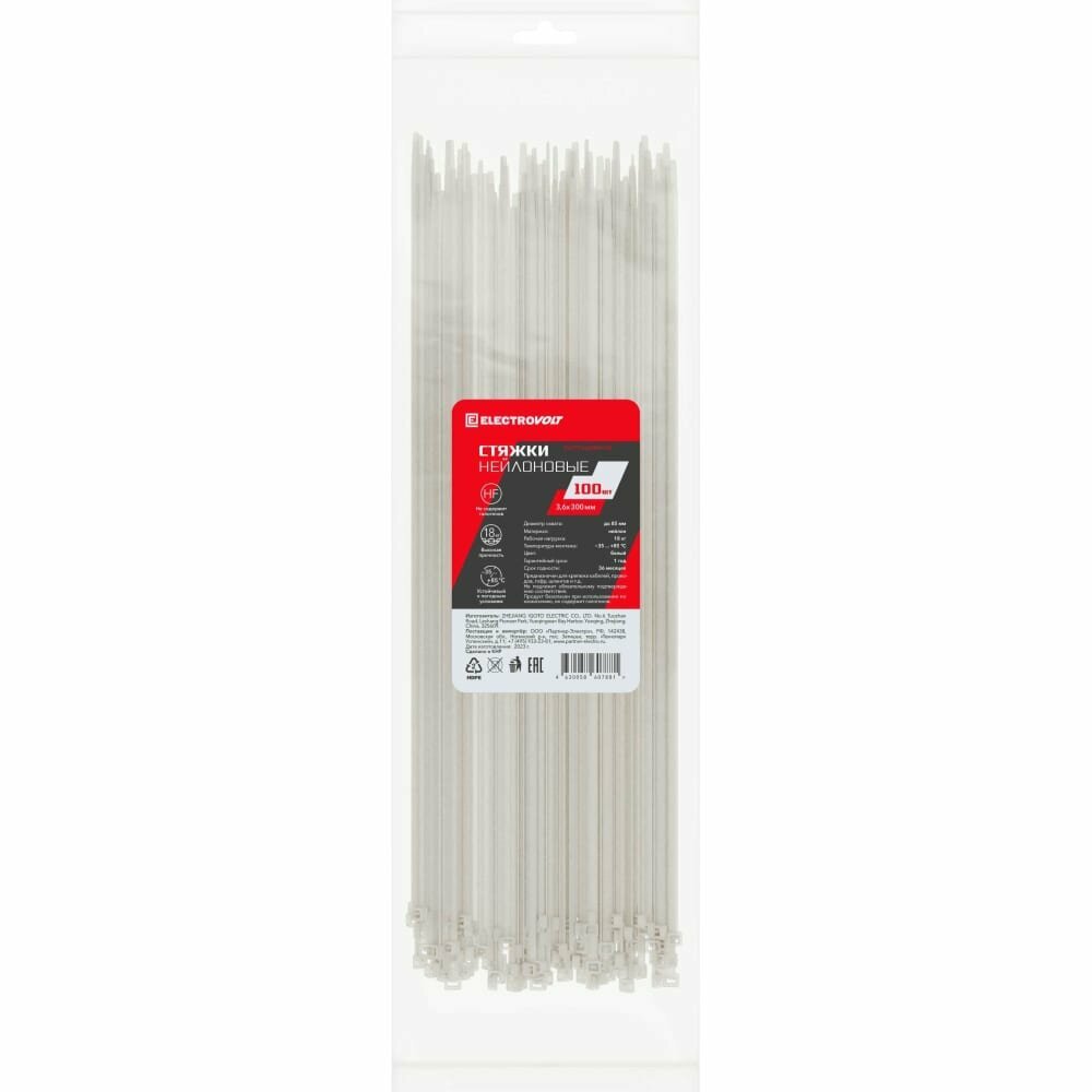 Нейлоновая стяжка ELECTROVOLT, 4,8 х 200 мм, 100 штук в упаковке, белая