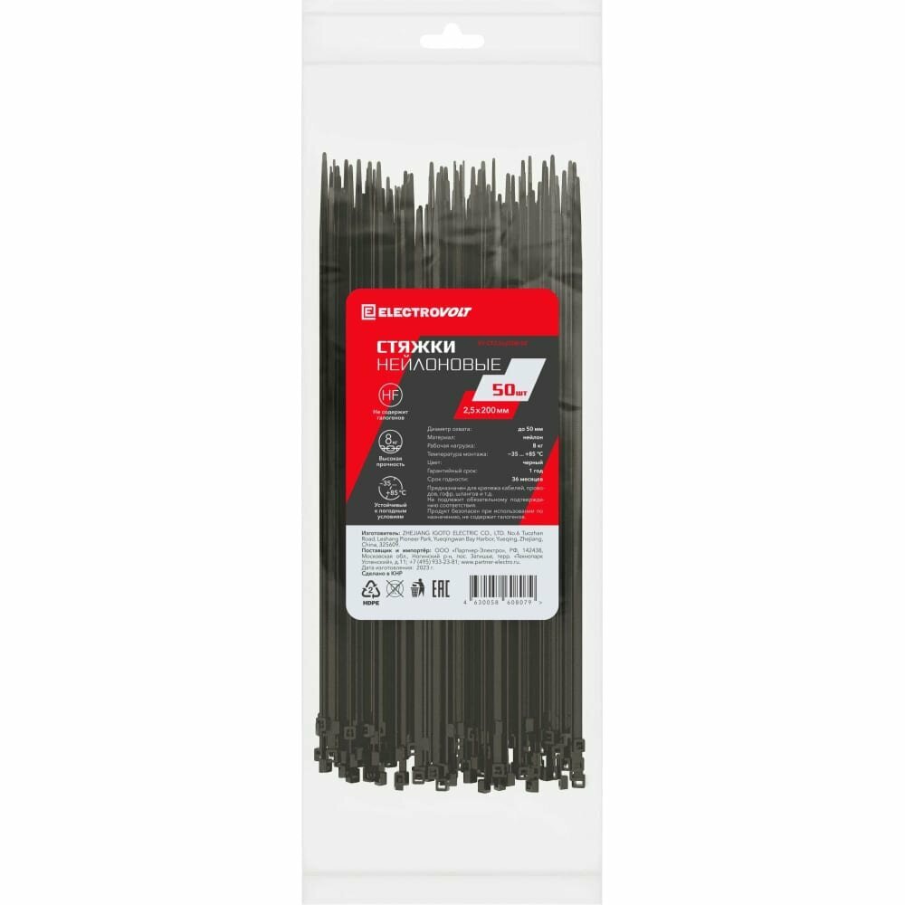 Купить Нейлоновая стяжка ELECTROVOLT, 2,5 x 200 мм, 50 штук в упаковке, черная