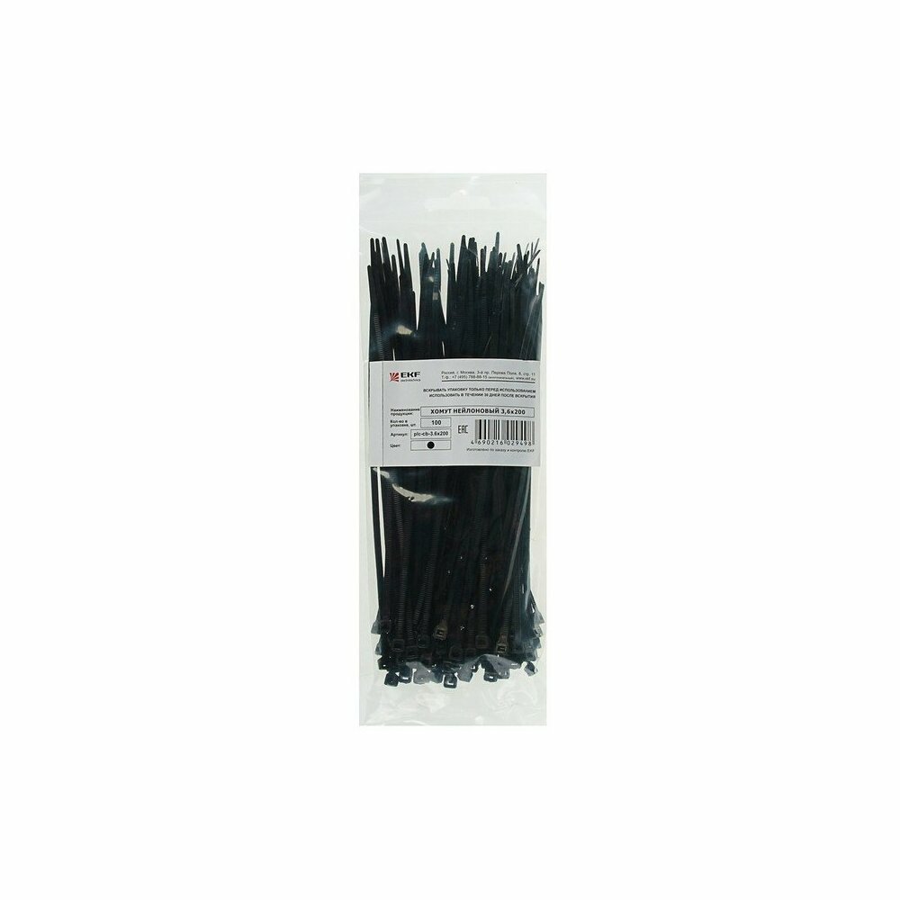 Хомут нейлоновый черный (3,6х200) (100шт.) EKF Basic интересное: