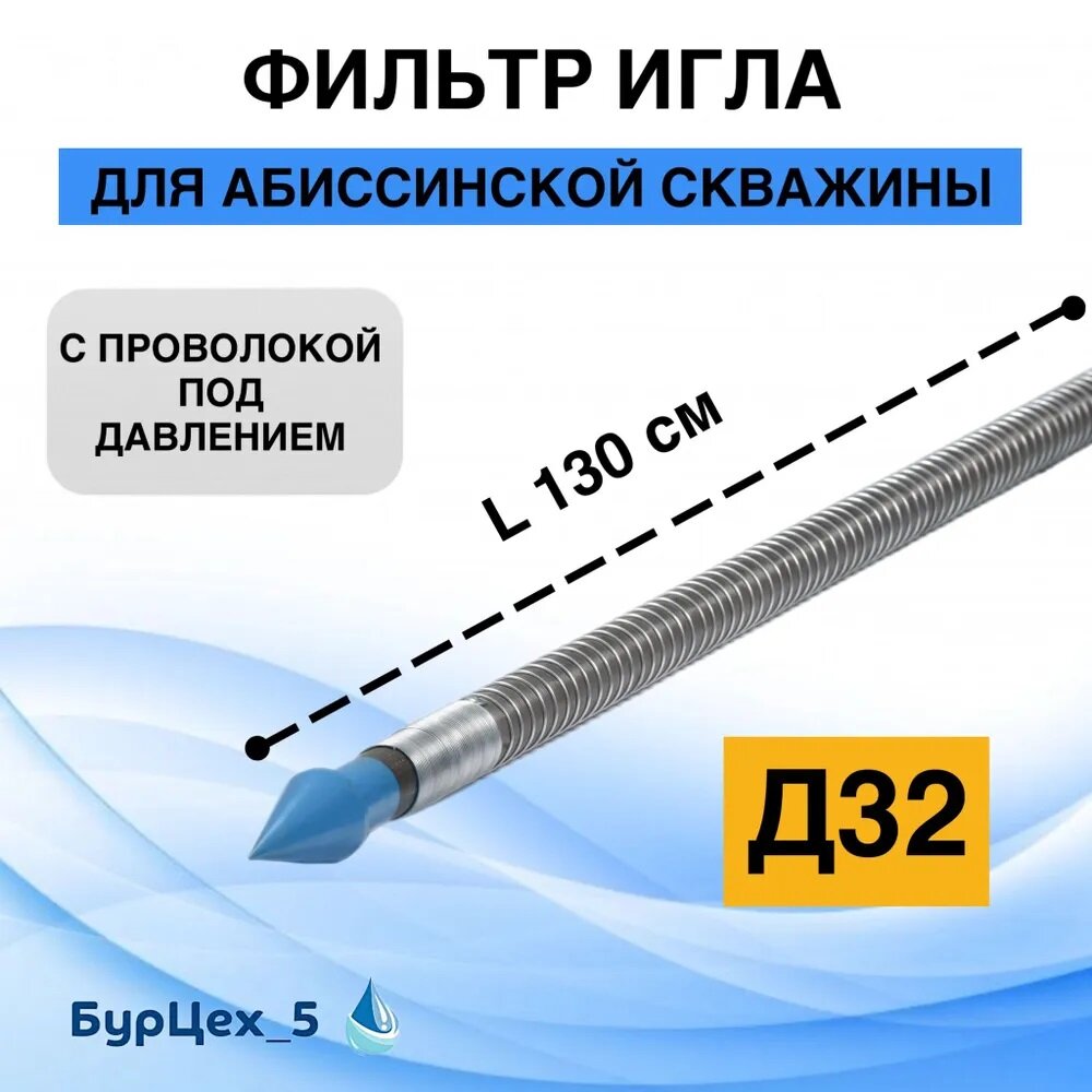 Фильтр Игла 32мм 1 1/4" (дюйм с четвертью) для абиссинской скважины (оцинковка). С проволокой под давлением. интересное: