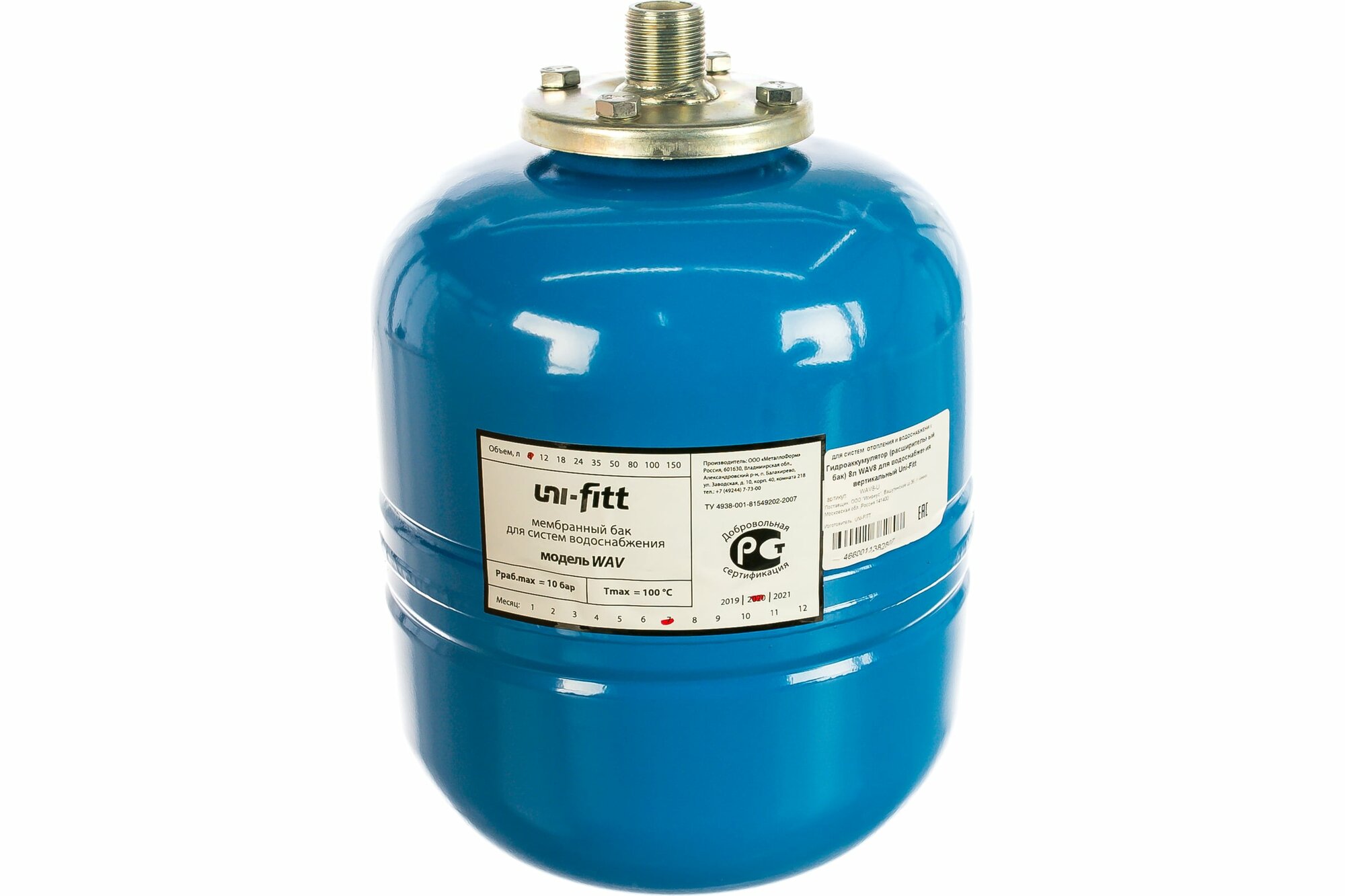 Купить Гидроаккумулятор (расширительный бак) Uni-fitt 8л WAV8 для водоснабжения вертикальный