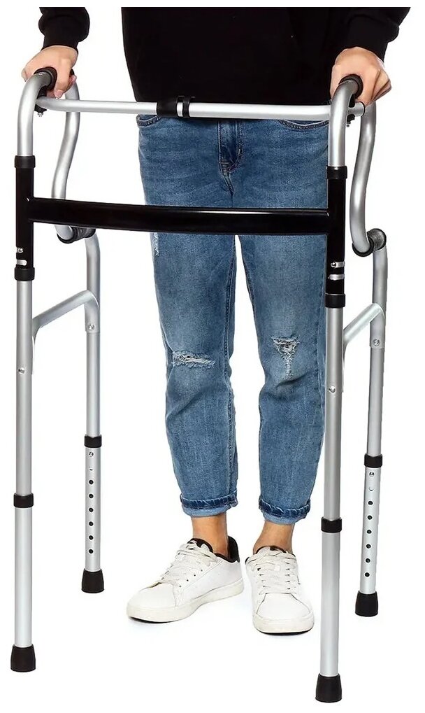 Ходунки Ortonica XS 308 для пожилых и инвалидов с двухуровневыми поручнями складные алюминиевые шагающие с кнопочной фиксацией до 100 кг интересное: