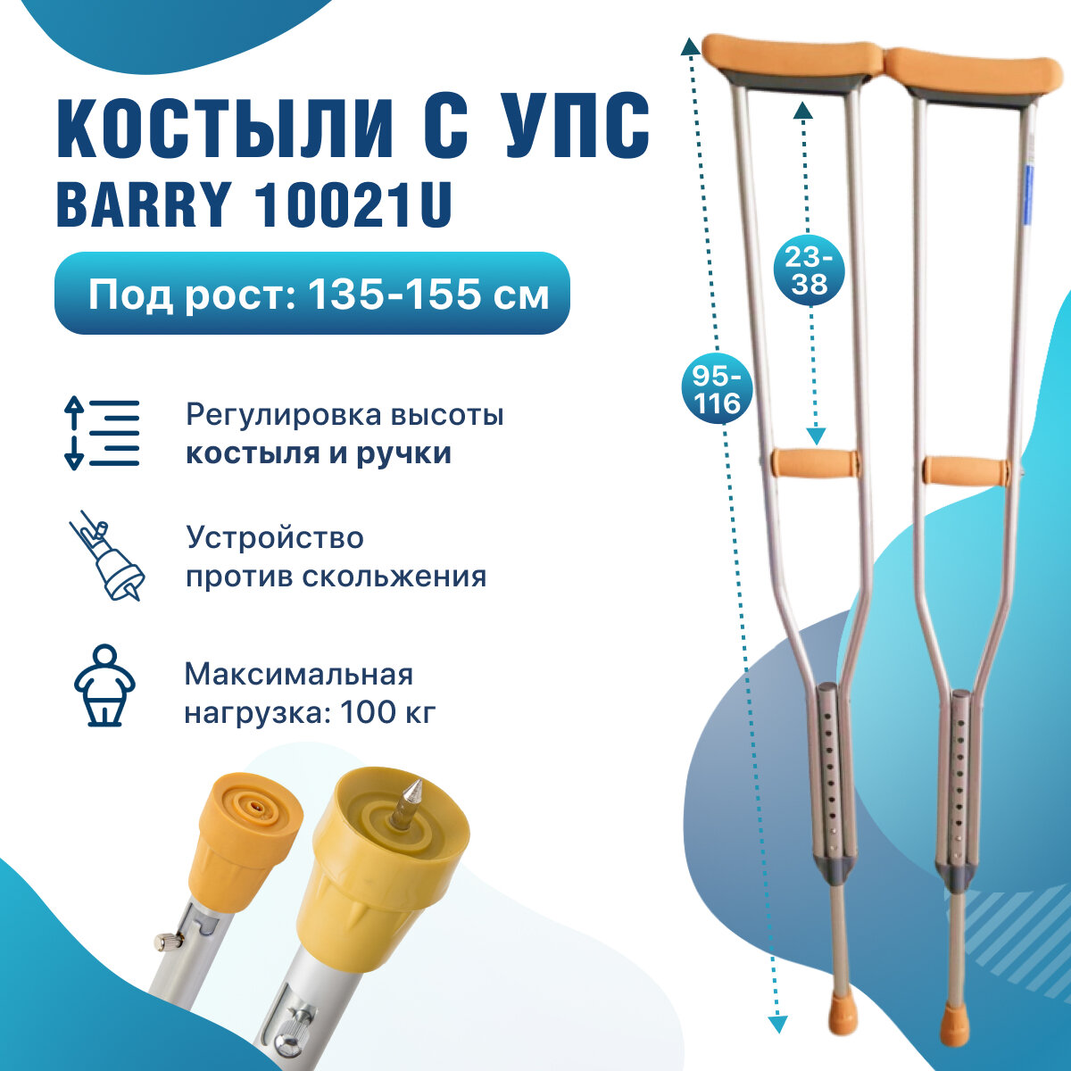 Купить Костыли подмышечные Barry 10021/U р. S с УПС