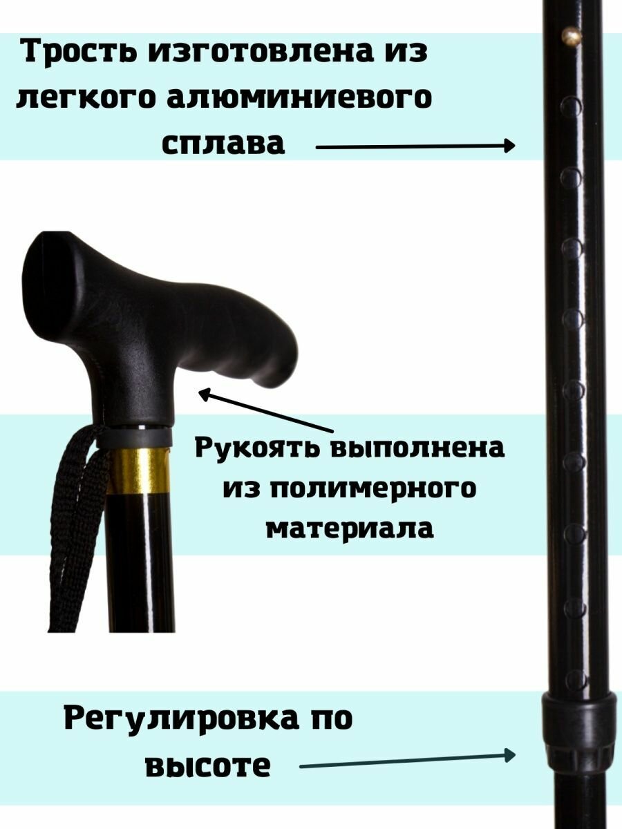 | Особенности трости | ортопедическая рукоятка / ремешок на кисть |