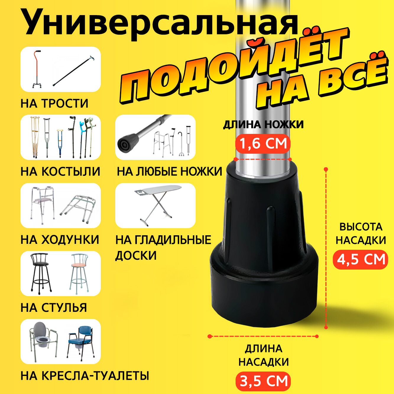 Наконечник для трости, костыля, ходунков, насадка на ножки 16 мм на кресло-туалет 1 шт. черная интересное:
