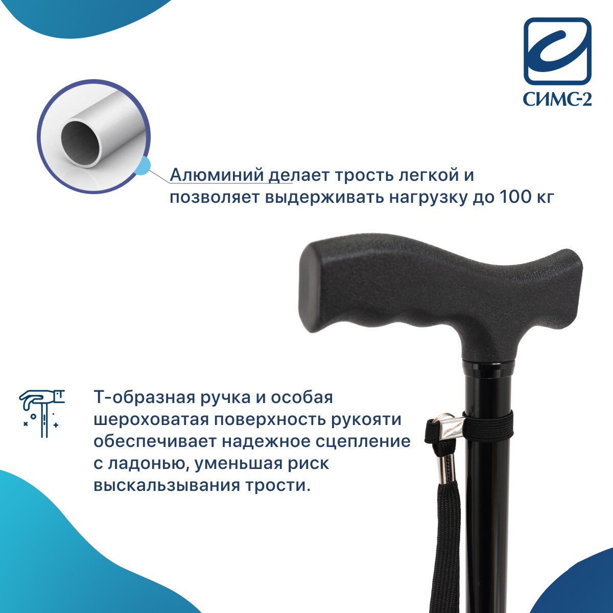 Трость опорная с УПС под рост 160-190 см для ходьбы для пожилых цвет черный Т-образная ручка C Standart