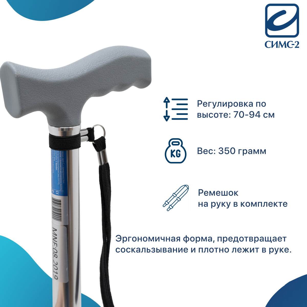 Трость опорная с УПС под рост 160-190 см для ходьбы для пожилых цвет хром Т-образная ручка C Standart