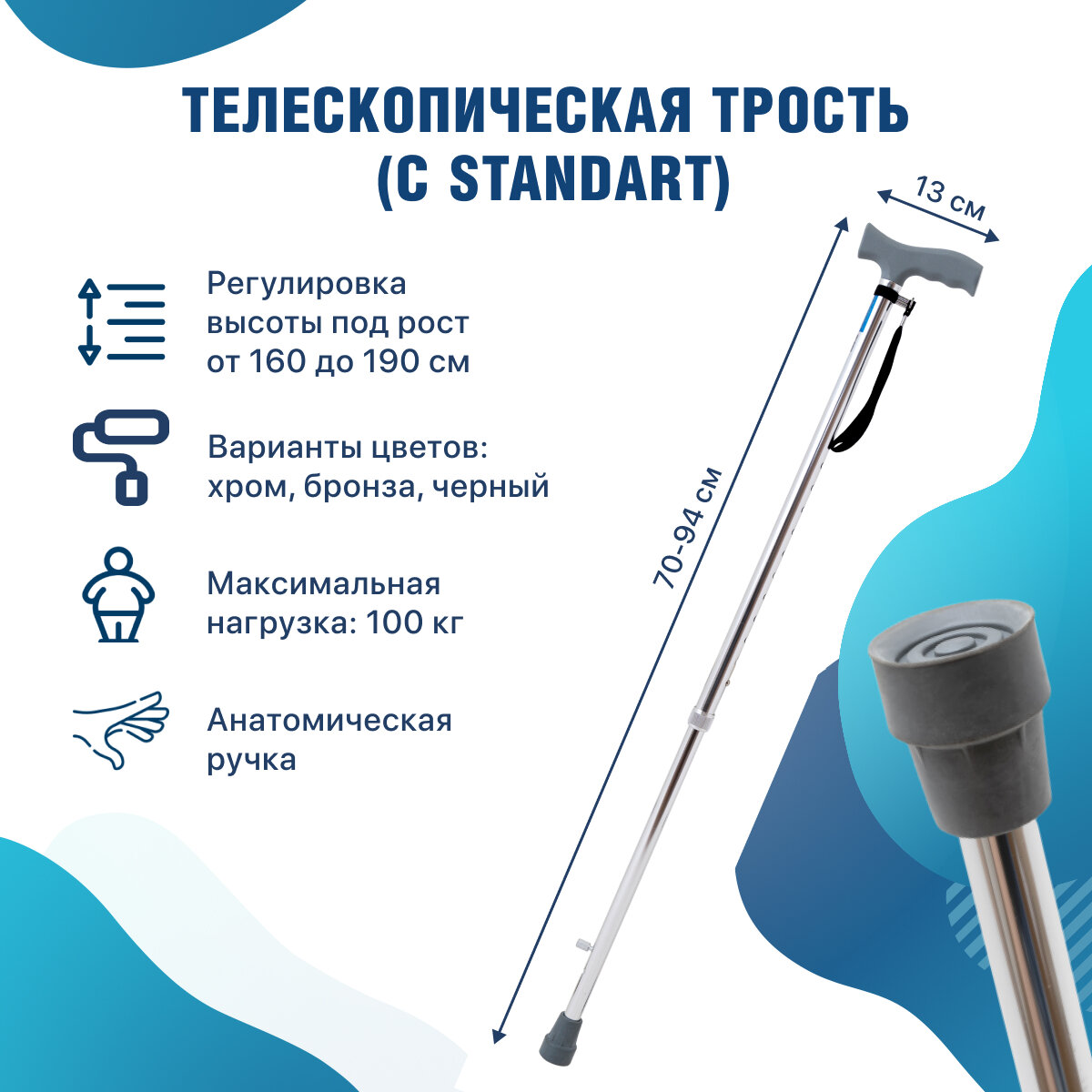 Трость опорная для ходьбы телескопическая C Standart с УПС (устройство против скольжения) для взрослых, пожилых людей и инвалидов
