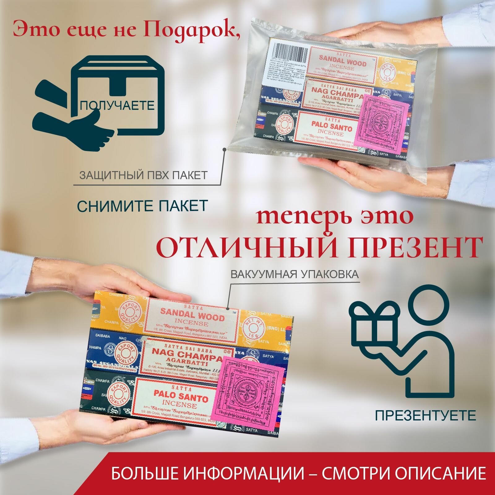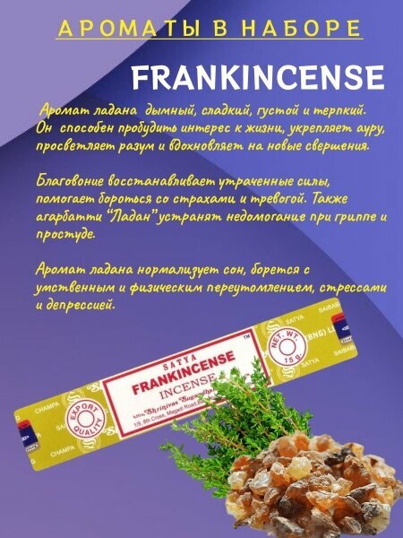 | Дополнительная информация | Набор благовоний, 4 упаковки по 15 гр. |