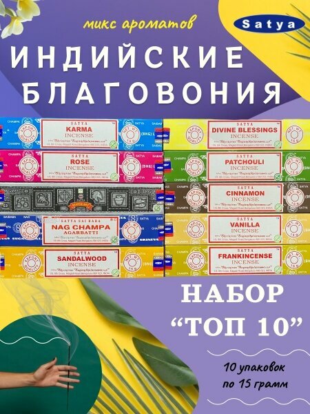 Ароматические палочки / набор 10 упаковок / Satya / арома благовония индийские интересное: